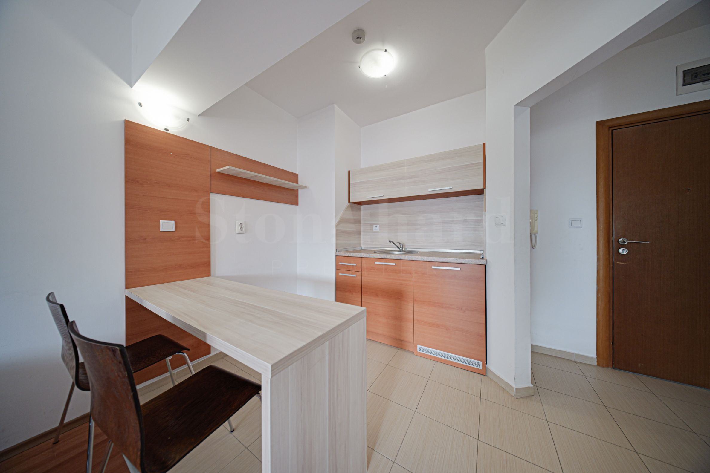 • Кухни в Блок 1: напълно оборудвани с бар плот, шкафове и уреди (хладилник, печка, котлони, абсорбатор, мивка);