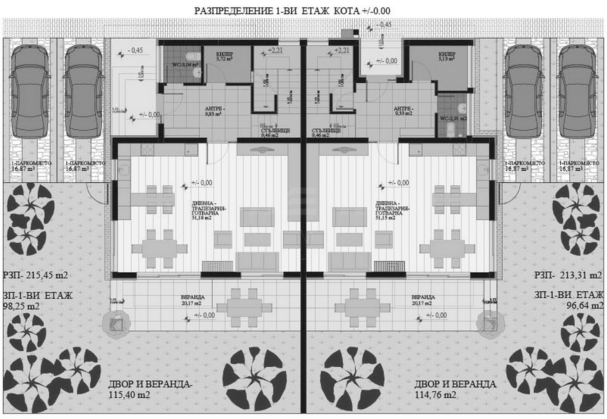Площи на жилищата: 215.45 м2
