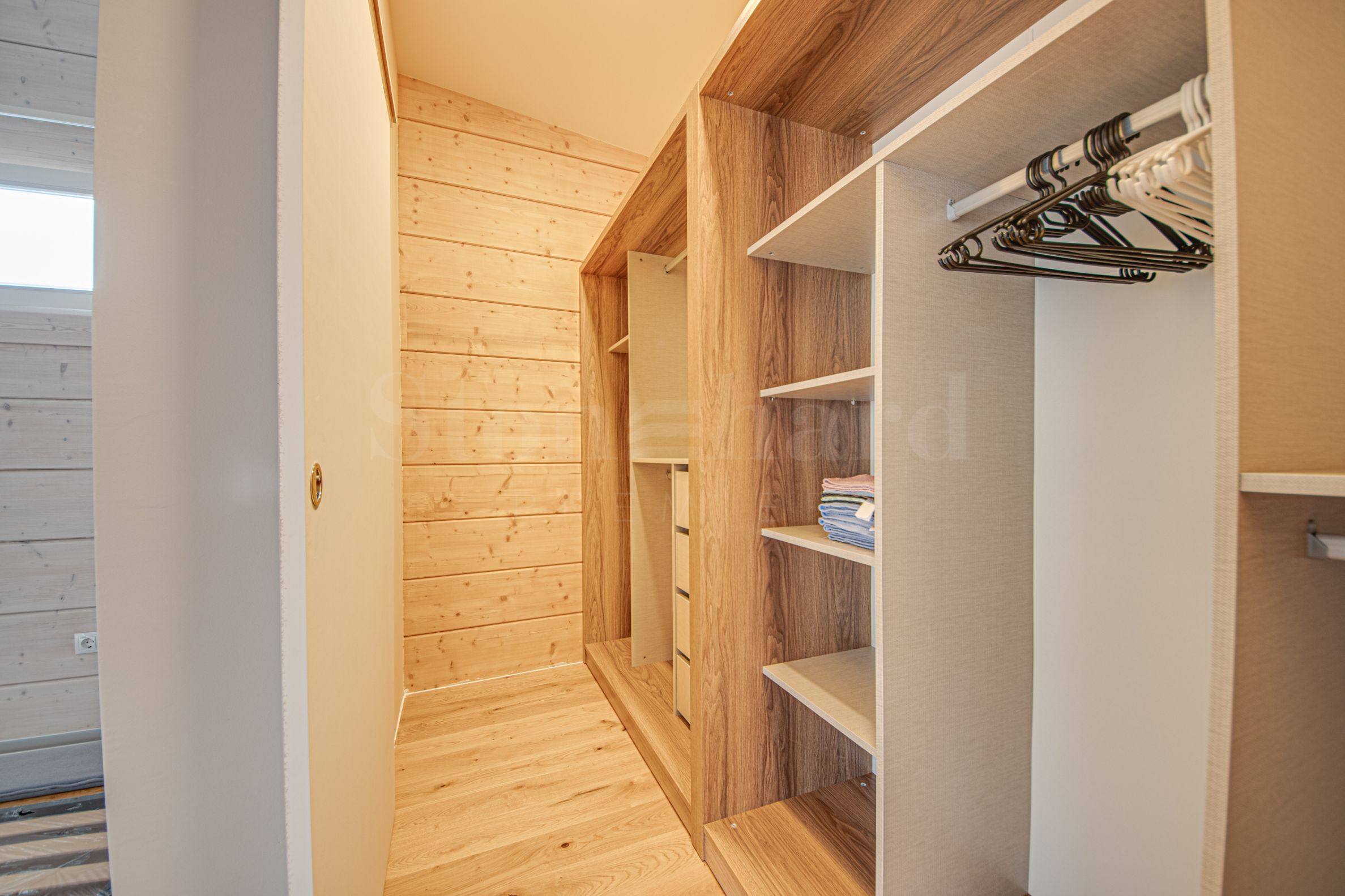 втори етаж: коридор, три спални, като едната има собствен дрешник и баня с тоалетна, баня с тоалетна, тераса.