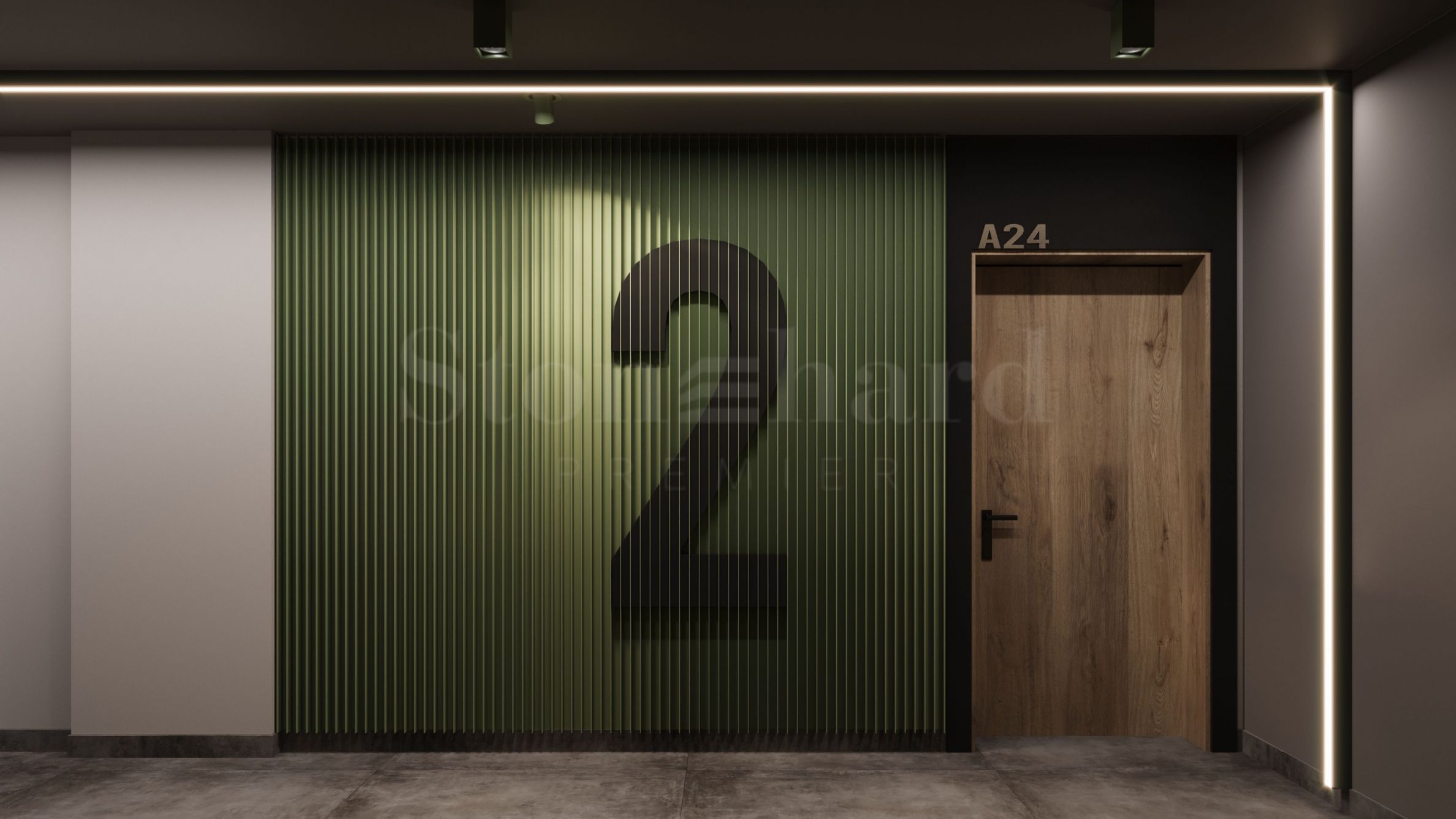 • Фоайета и коридори – под - циментова замазка и настилка от гранитогрес, стени - ламперия и облицовки според интериорен проект, окачени тавани с гипсокартон, боядисани с латекс върху гипсова шпакловка, с дизайнерско осветление по проект.