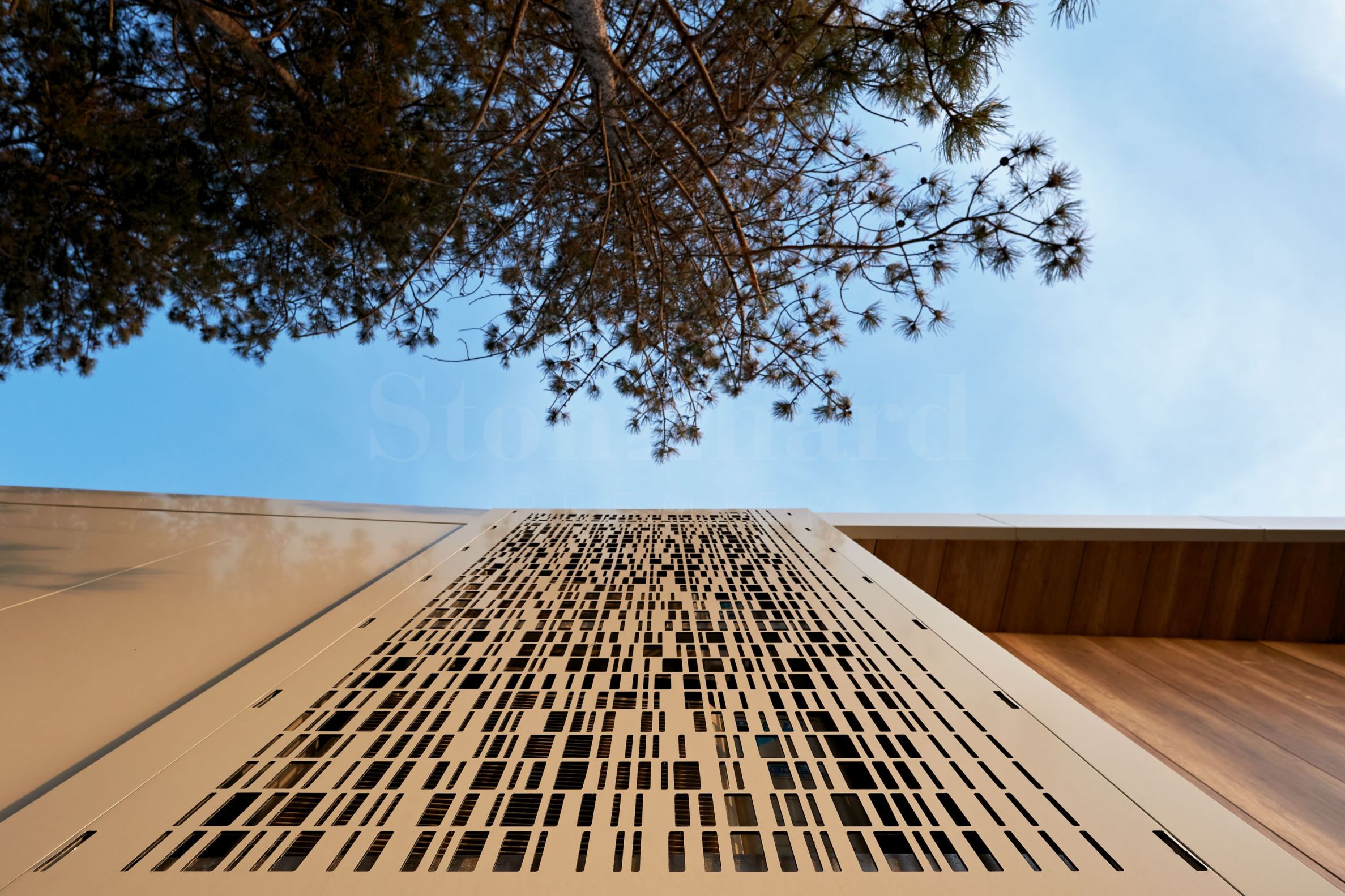 • фасадите са вентилируеми, с плоскости HPL на австрийската компания FUNDERMAX и системи от композитни панели ALBOND с PVDF покритие, както и естествена каменна облицовка, осигуряващи максимална защита срещу климатичните условия;