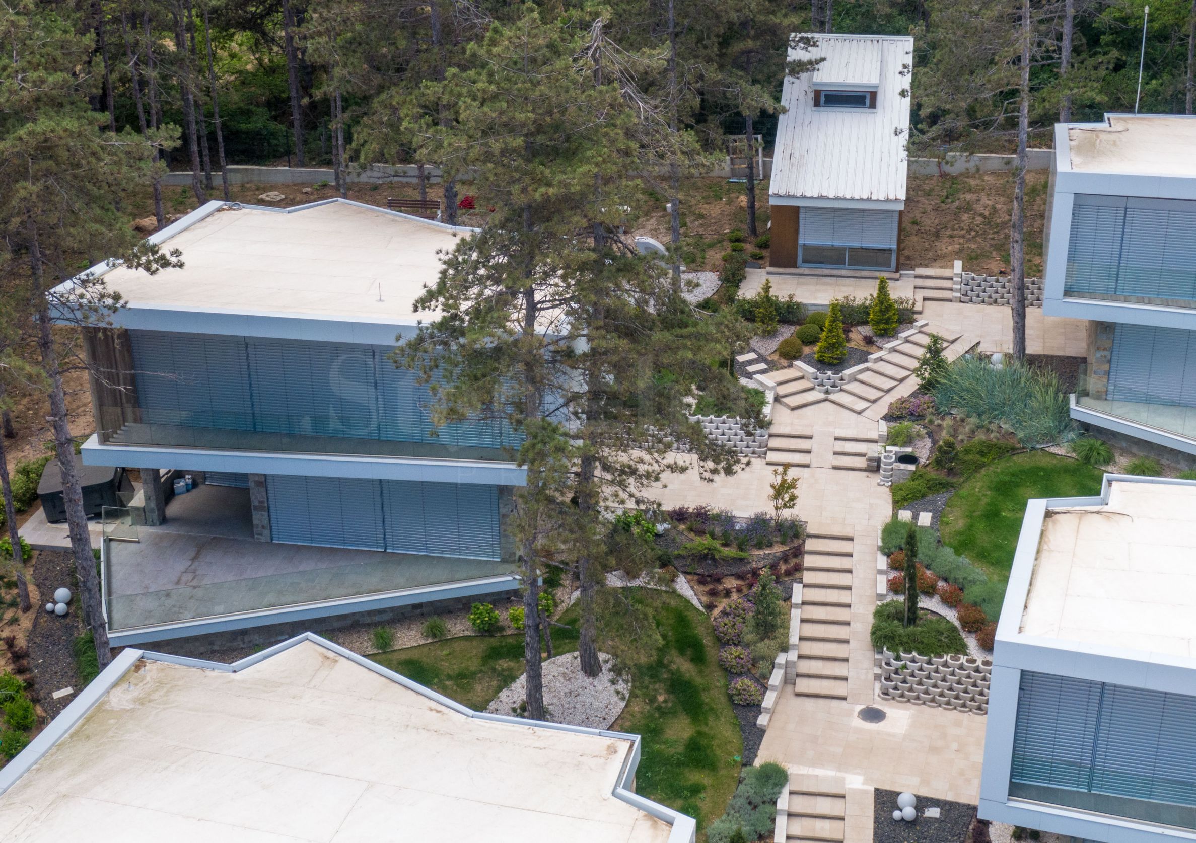 • за осигуряване на максимални гледки към морето, прозорците са френски тип, с голяма плъзгаща се част, за изобилие на естествена светлина и хармонично преминаване от интериора в екстериор и в същото време, имотите са оборудвани с електрически регулируеми външни щори по цялата фасада на първия и втория етаж, осигуряващи максимална защита срещу светлина и агресивна климатична среда;