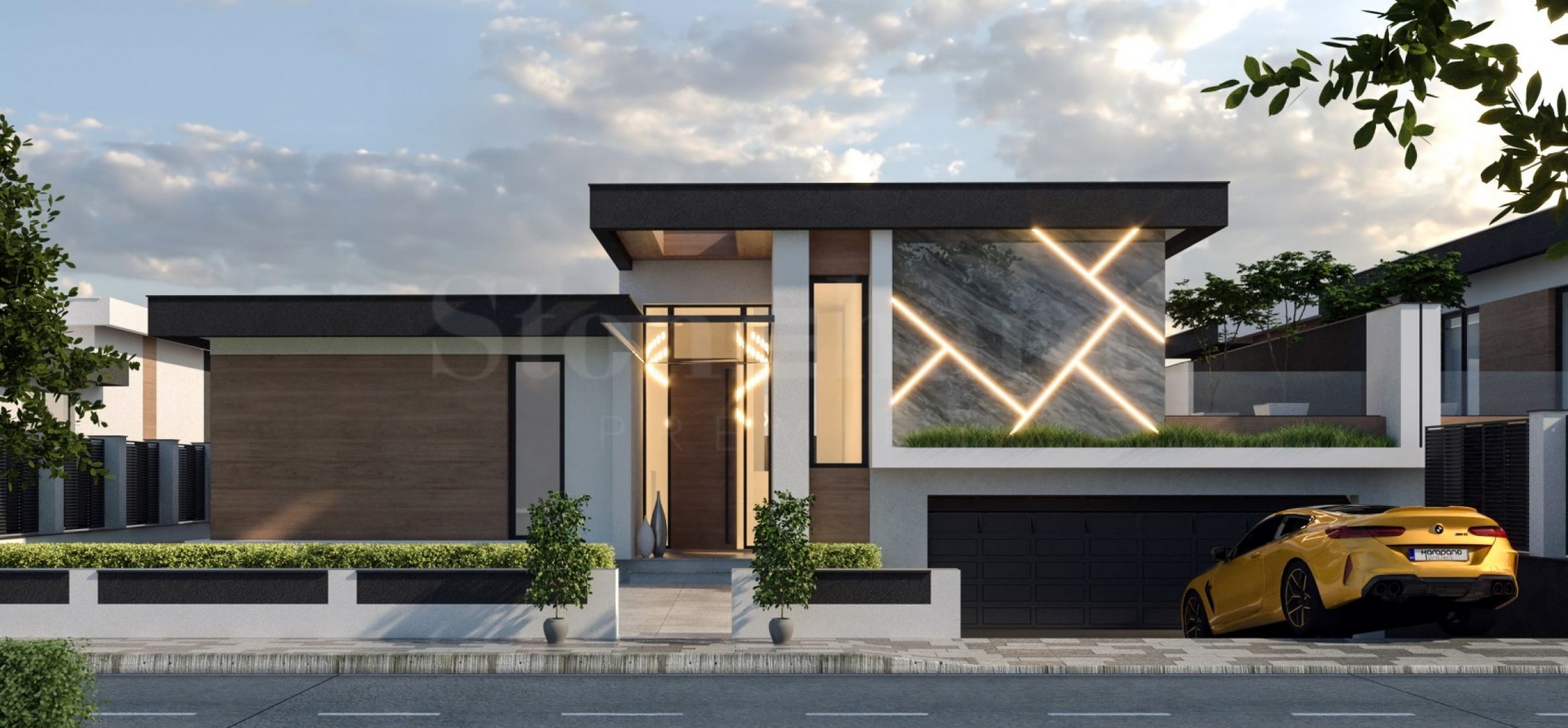 С РЗП от 328 кв.м, разпределени на две нива, и самостоятелен двор от 539 кв.м, този дом е проектиран да отговори на най-високите изисквания.