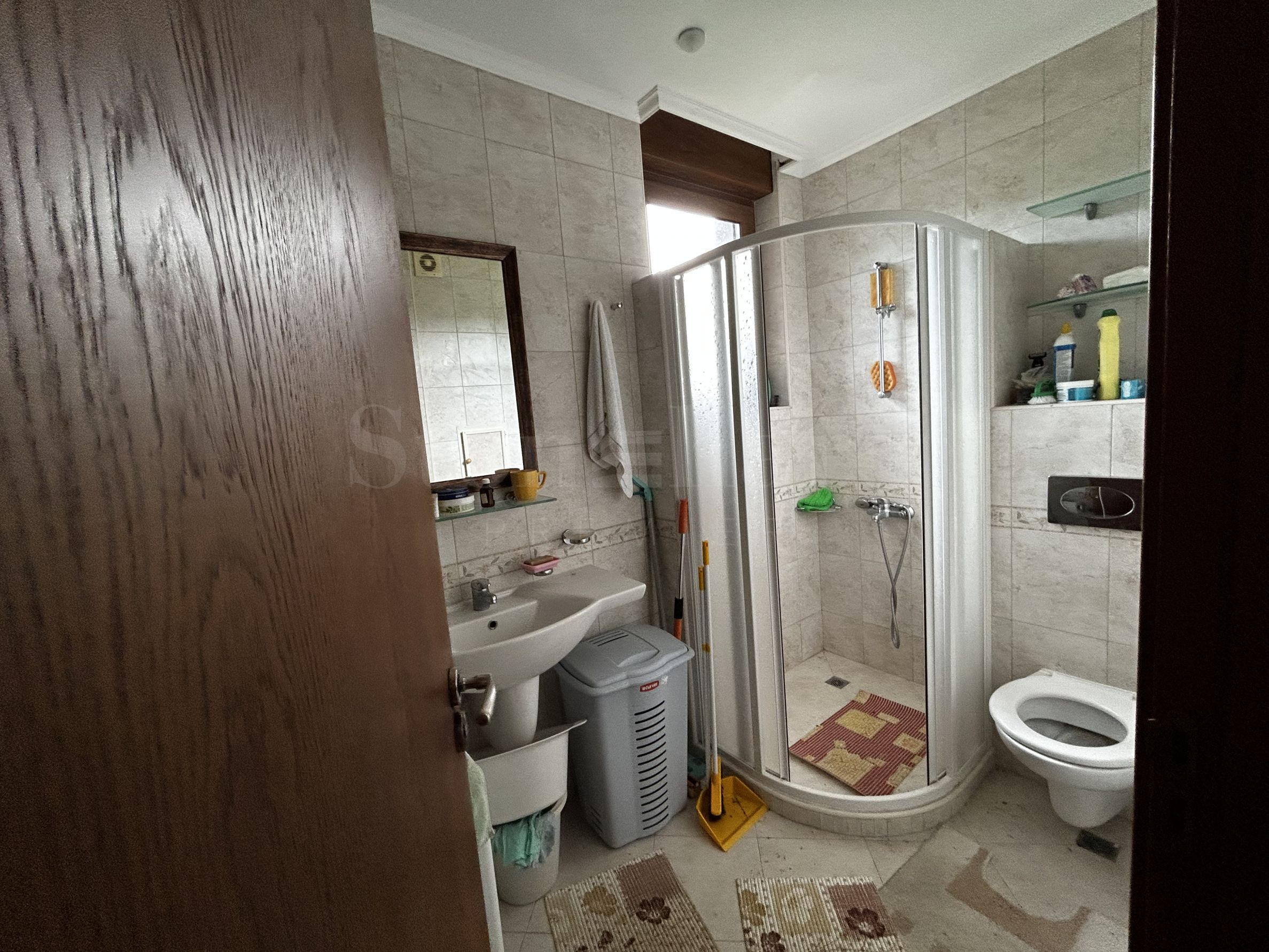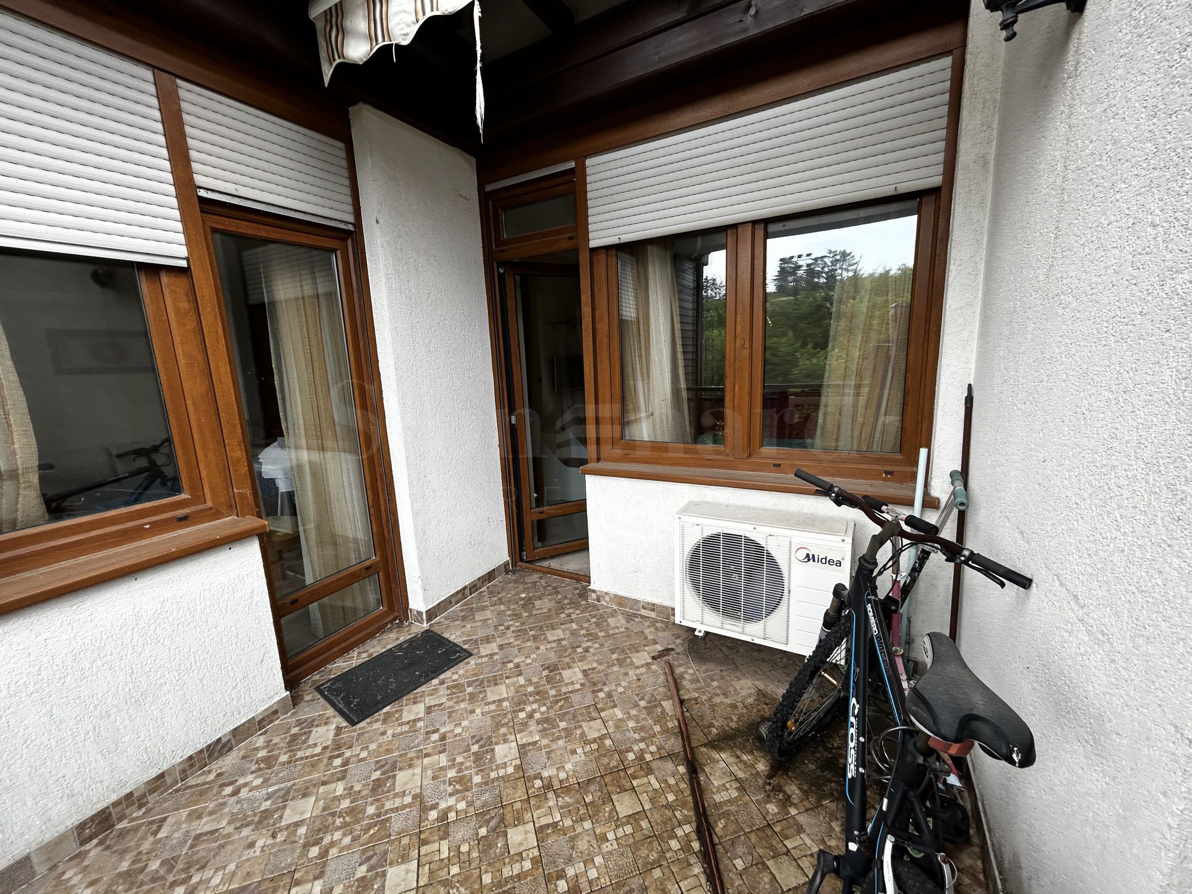 Апартаментът се намира на 4-ти етаж и има обща площ 67,80 кв.м, от които 4,12 кв.м - общи части. Имотът разполага с обширна тераса от 8.40 кв.м. Нуждае се от ремонт, мебелите може да се използват от бъдещия собственик. Необходим е ремонт на дограмата, дървените перболи на терасата и освежаване.