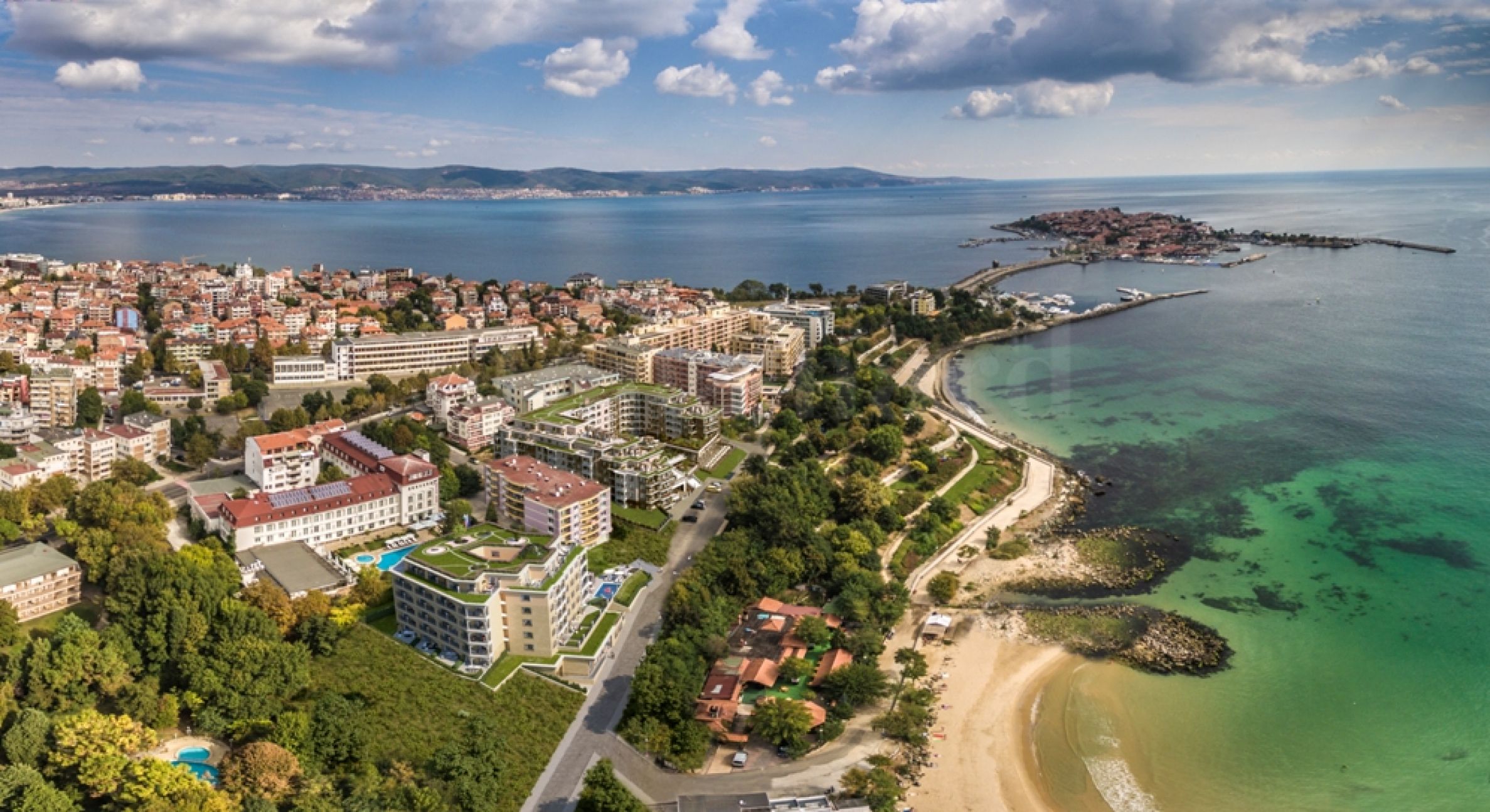 В елегантен и модерен комплекс, в съвременен и класически архитектурен стил, разположен на първа линия в новата част на гр. Несебър, в непосредствена близост до историческата зона на града и Южен парк.