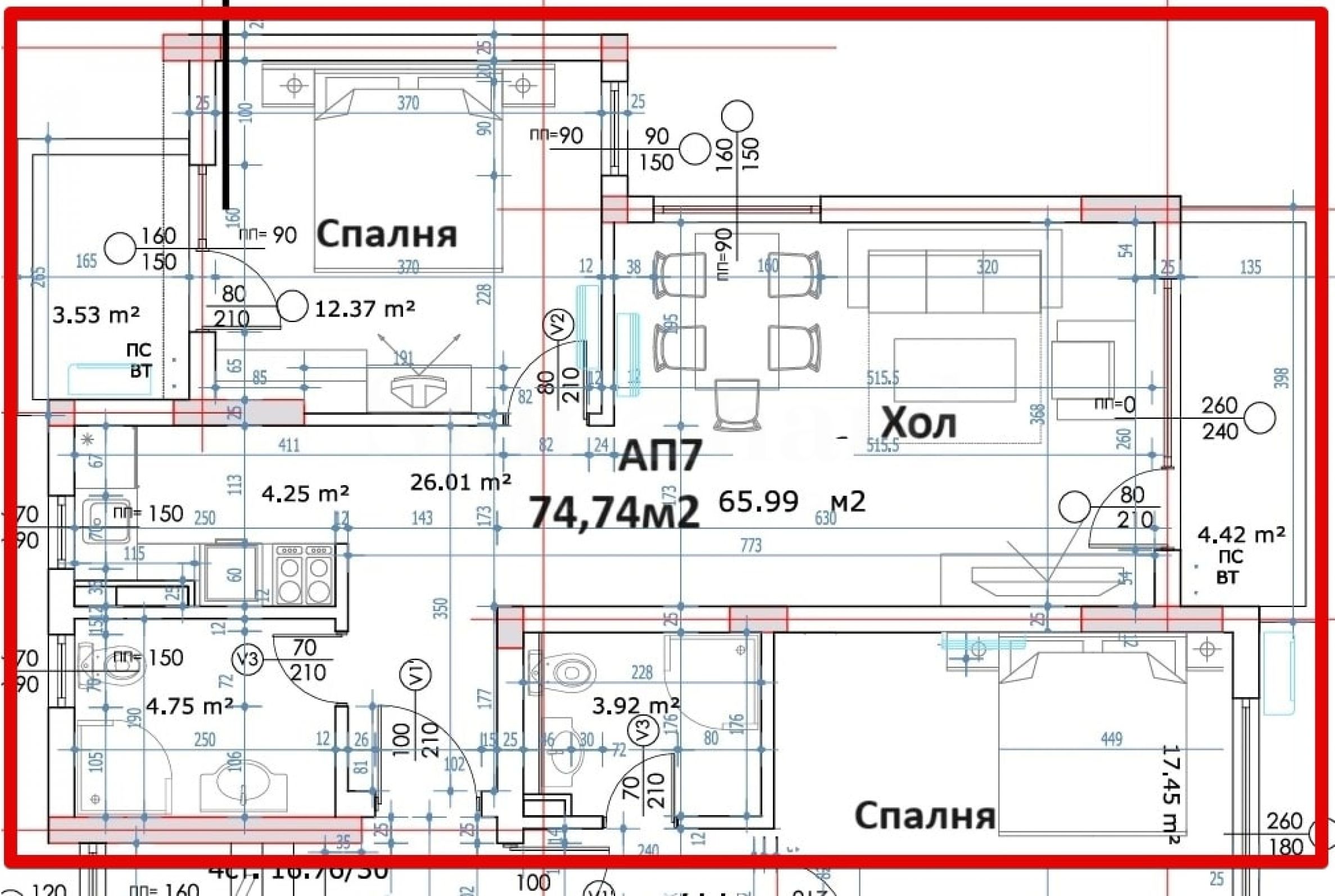 Площи на жилищата: 74.33 м2