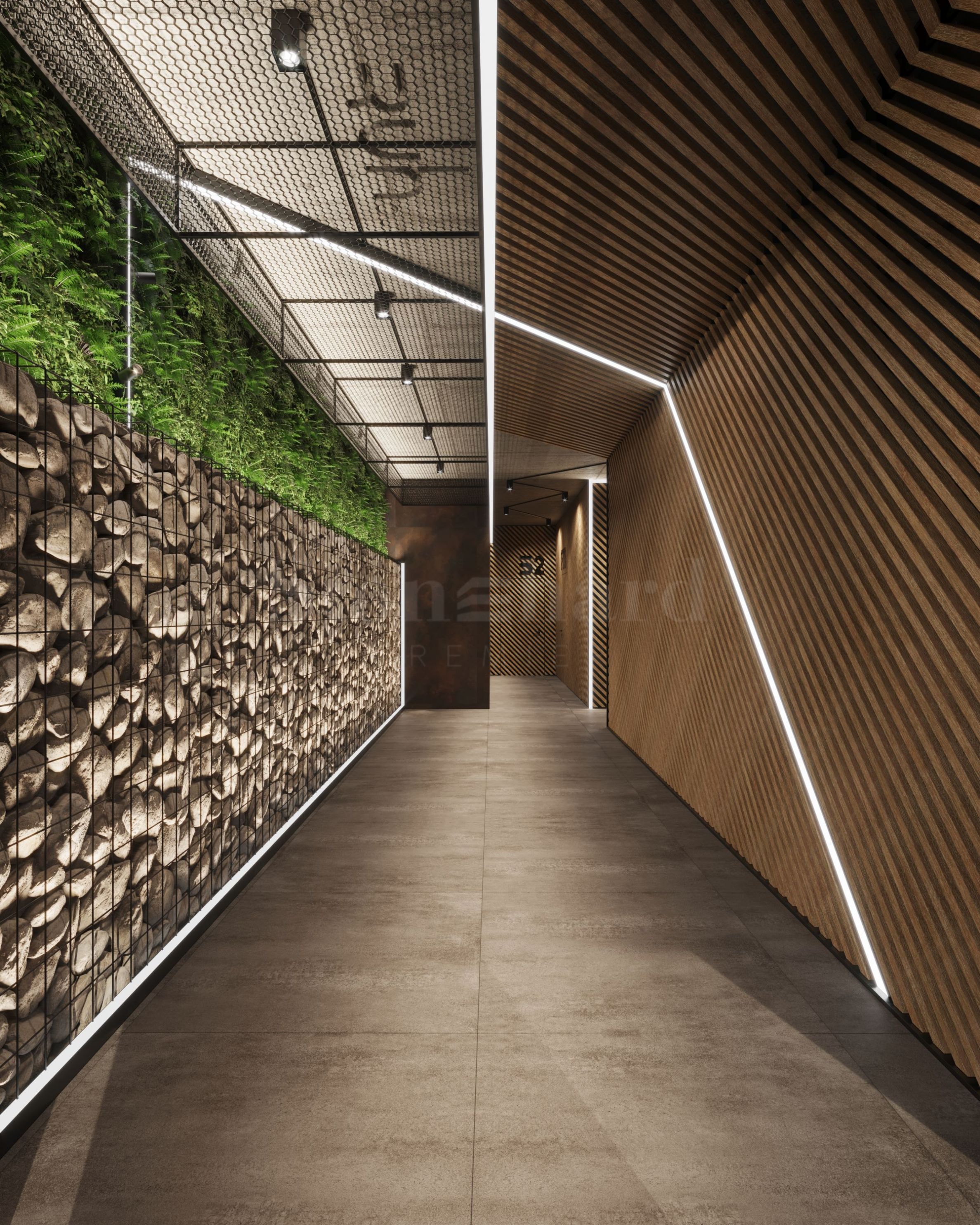 • Фоайета и коридори – под - циментова замазка и настилка от гранитогрес, стени - ламперия и облицовки според интериорен проект, окачени тавани с гипсокартон, боядисани с латекс върху гипсова шпакловка, с дизайнерско осветление по проект.