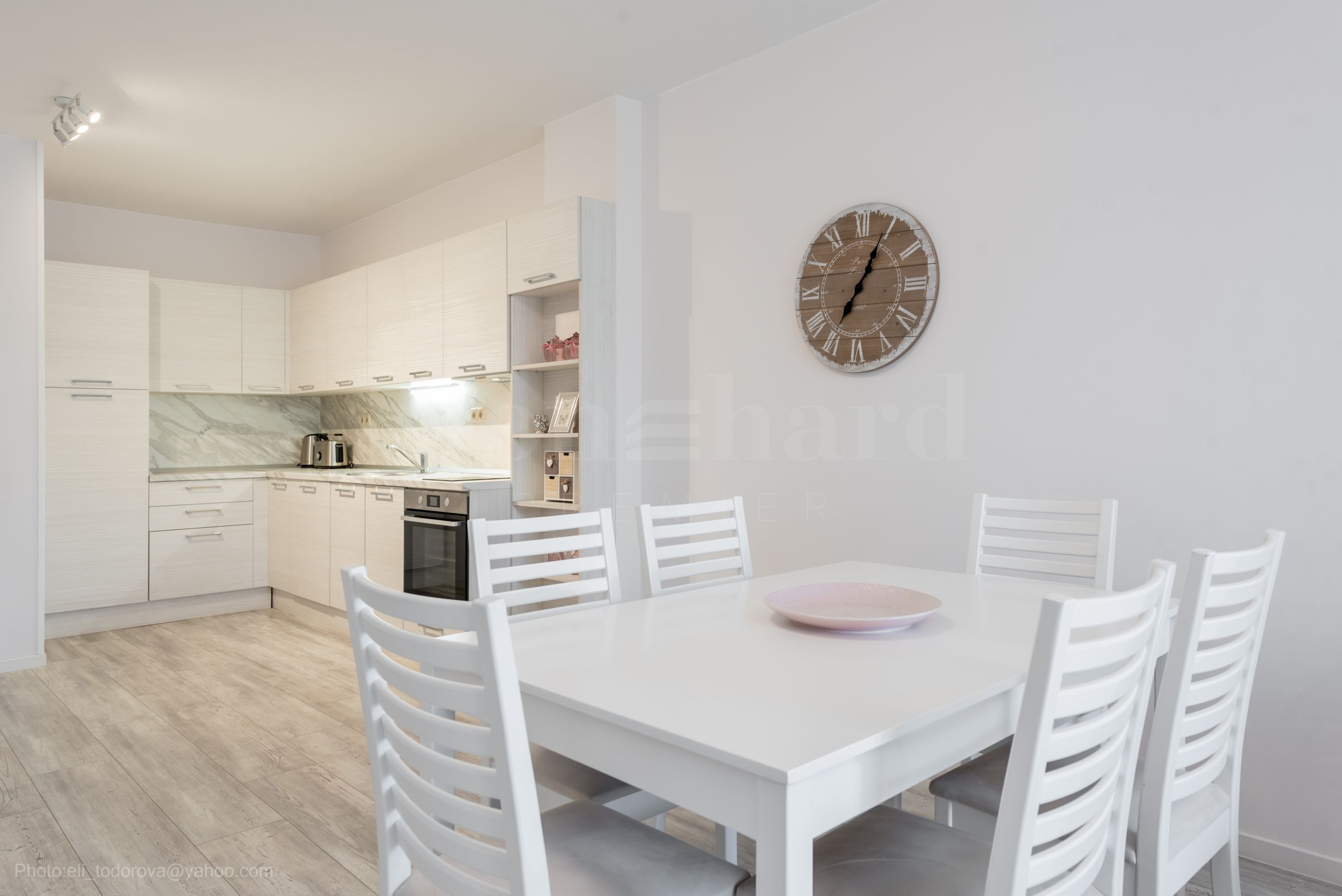 На влизане в апартамента Ви посреща уютен коридор, който води до просторната светла дневна. Кухнята е напълно обзаведена и оборудвана с всичко необходимо, за да удовлетвори всички Ваши кулинарни желания.