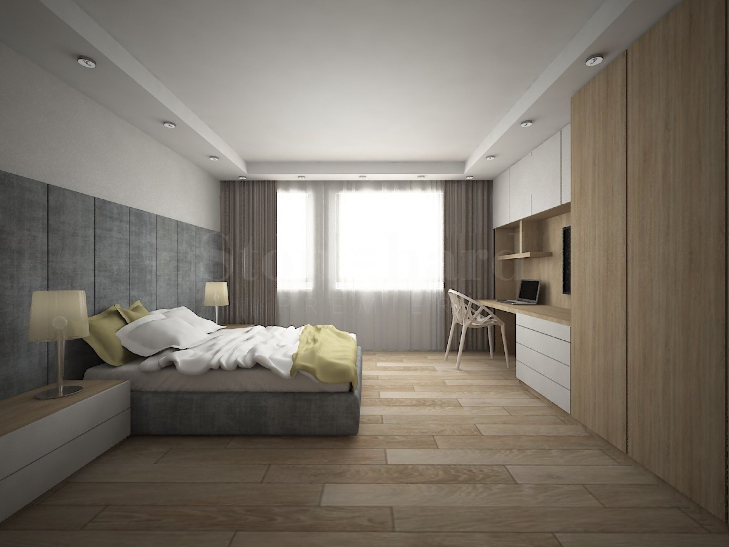 Етаж 2- Коридор, мокро помещение, 3 спални, балкон, гардеробно, 2 бани, стълбище.