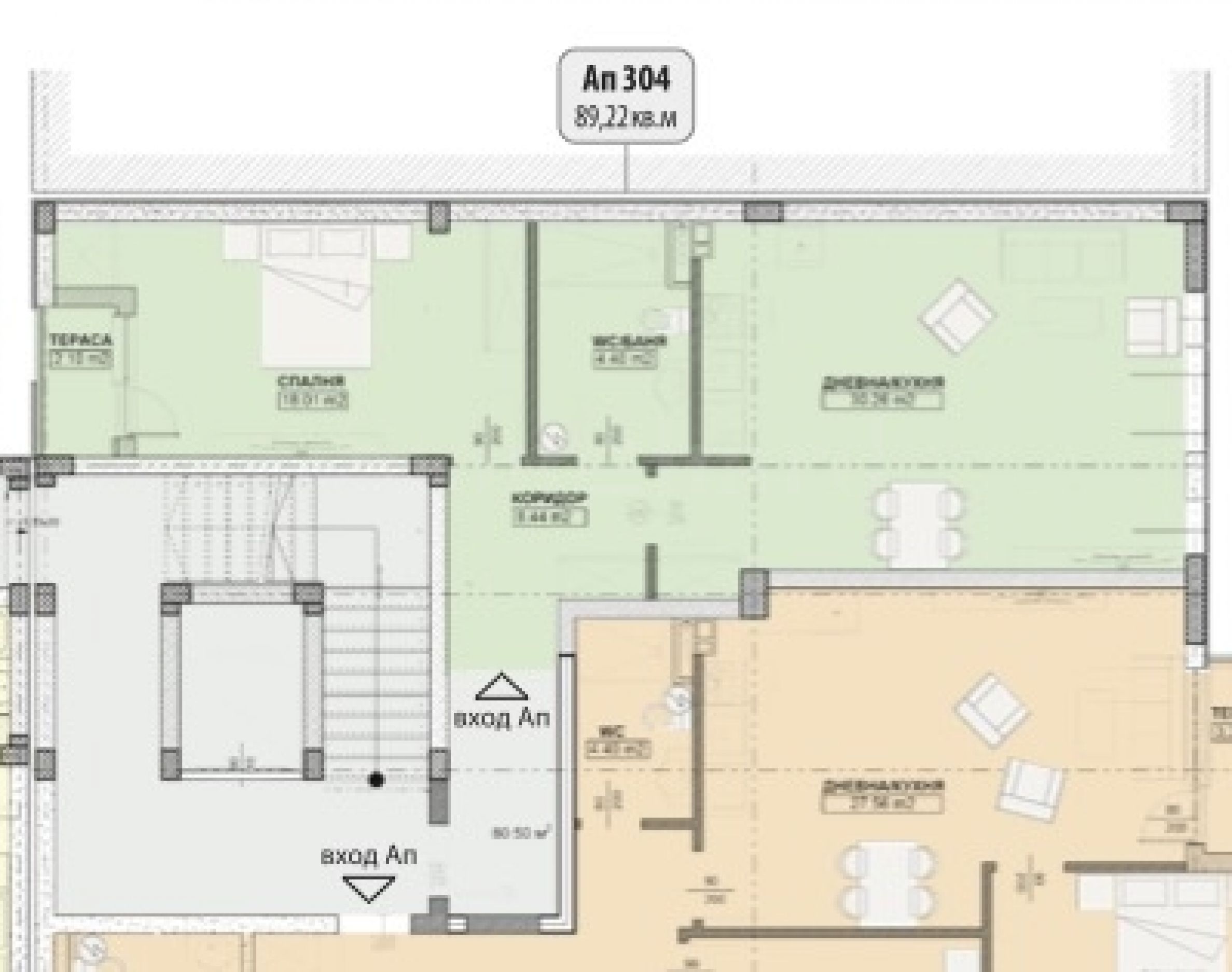 Площи на жилищата: 89.22 м2