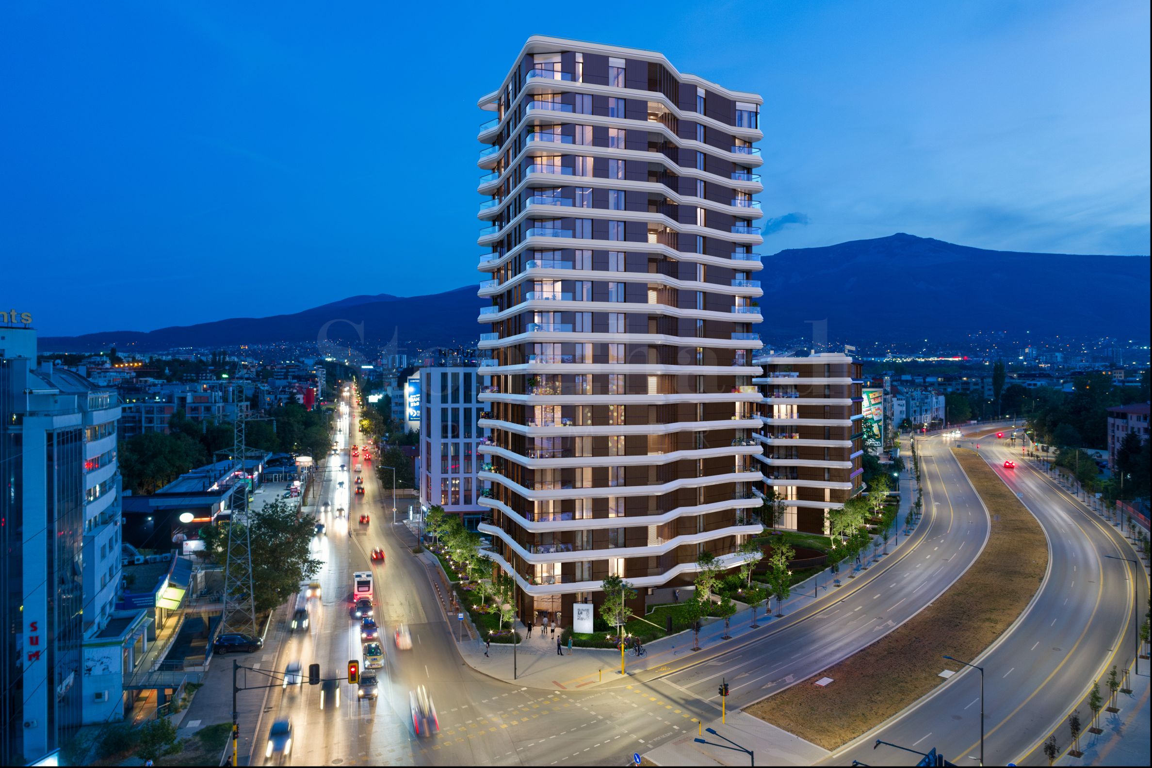 Комплексът се състои от две хармонично допълващи се сгради - "А" (8 етажа) и "Б" (18 етажа), обединени от обширно зелено пространство, и в симбиоза с атрактивната локация до парка ще предоставя на обитателите си и собствен двор с внимателно подбран ландшафт. Включени са иглолистни и широколистни дървета, цъфтящи храсти с продължителен период на цъфтеж и декоративни треви, които създават уютна атмосфера.