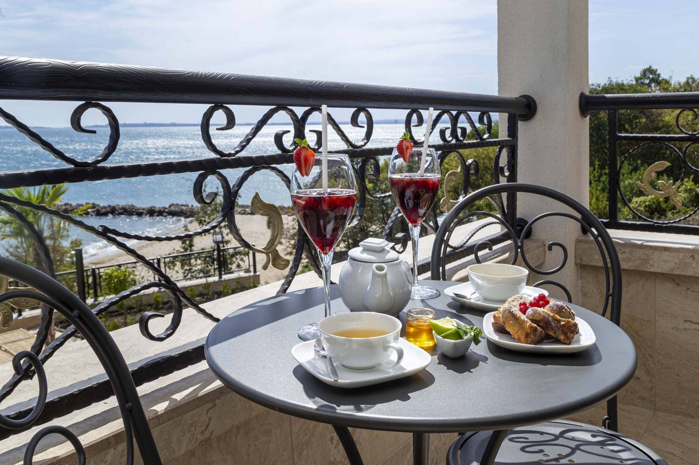 веранда с гледка към морето.Жилището е дизайнерски обзаведено и оборудвано с висок клас мебели и електроуреди.
