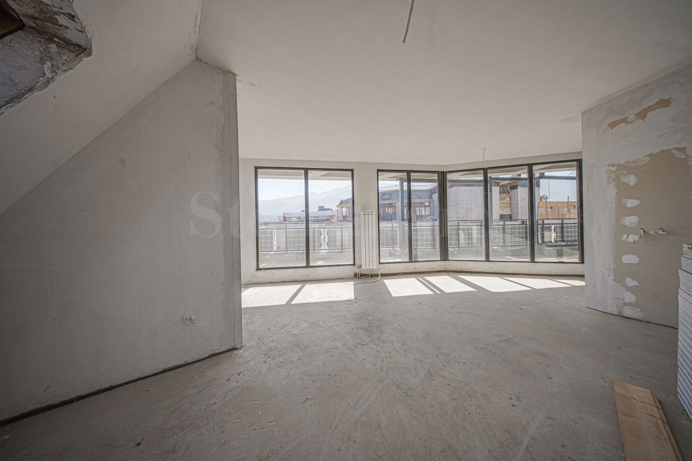 Апартаментът е разположен на цял един етаж и е с площ от 153,49кв.м, състои се от антре, хол с кухненски бокс, спалня, втора спалня, баня с тоалетна, тоалетна и панорамни тераси от всички страни.