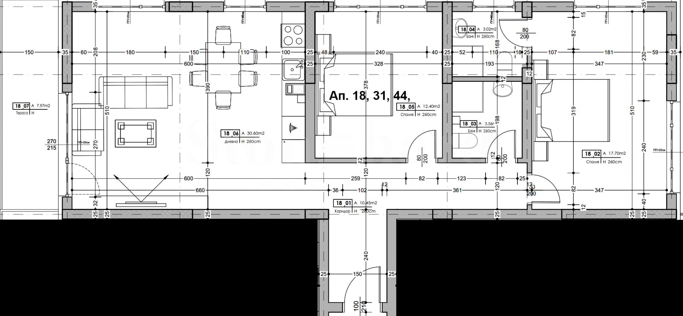 Имотът с обща площ от 117,28 кв.м е разположен на 2-ри етаж от 7.