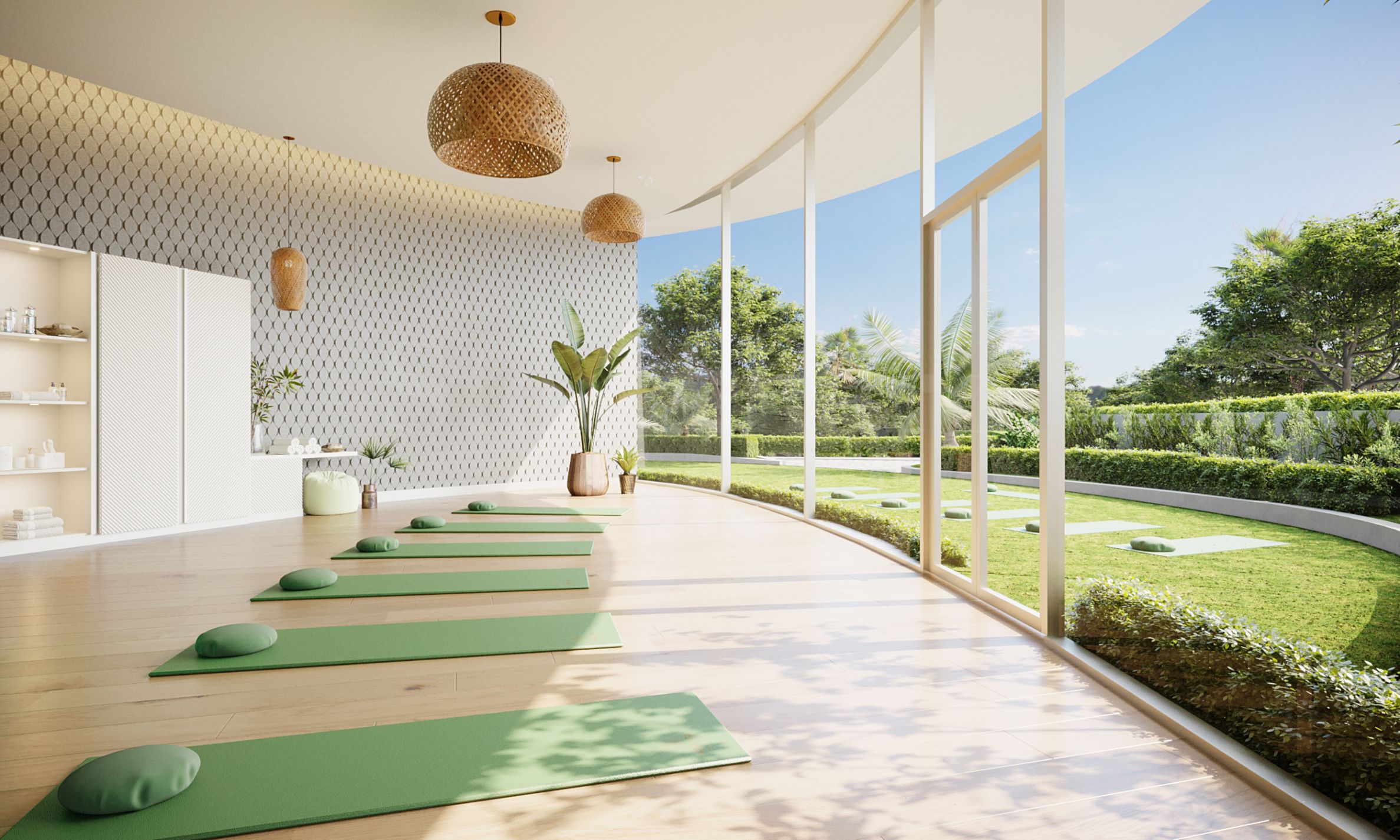 • Оборудван фитнес и стая за йога с плъзгащи се прозорци, позволяващи да тренирате на свеж въздух;