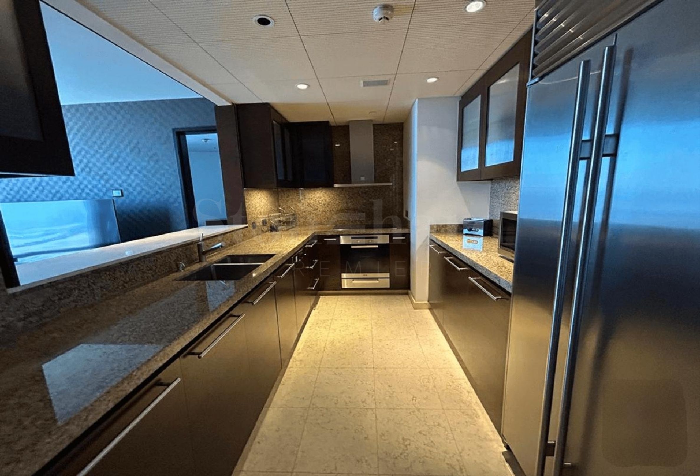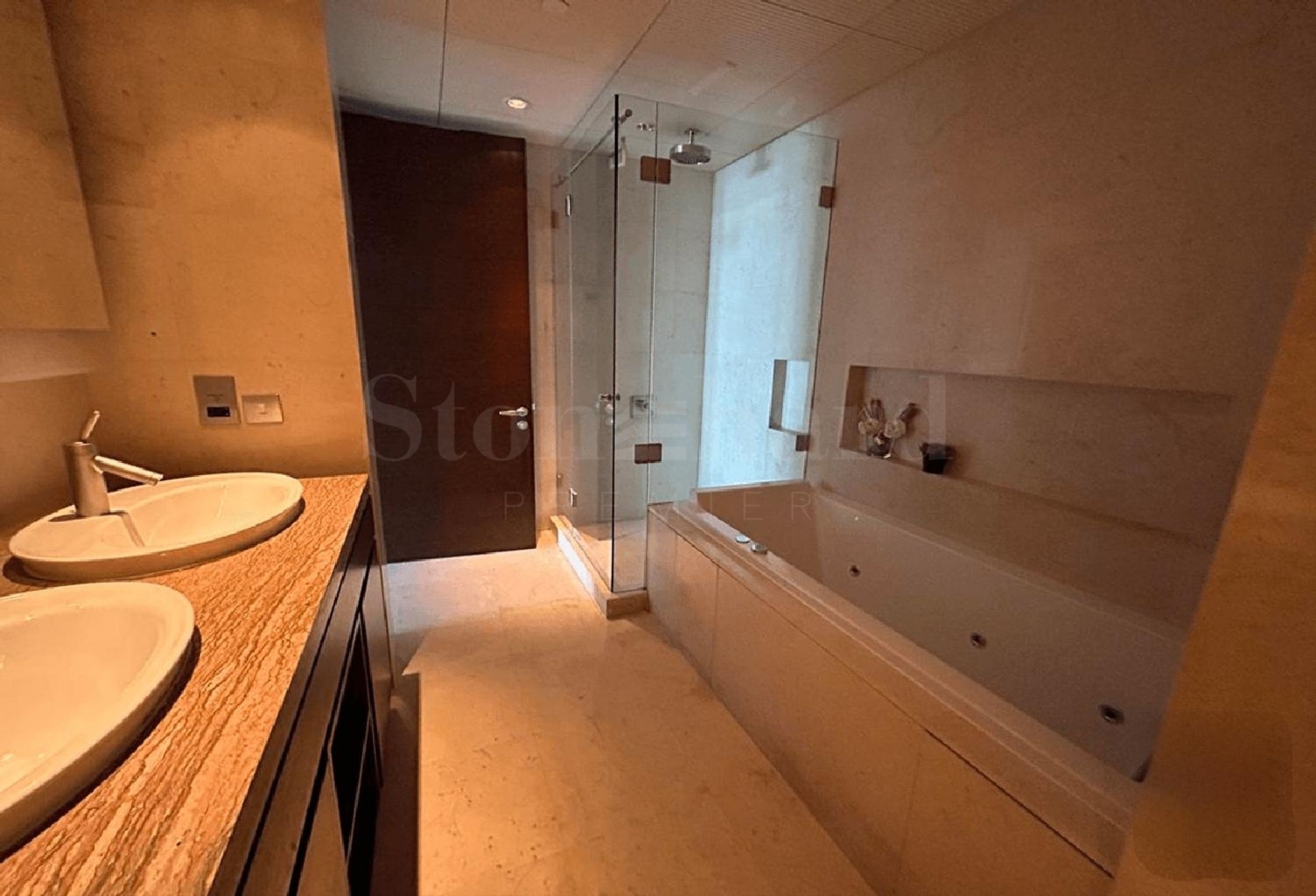 Състои се накратко от модерен входен коридор с кухня отдясно. Модерната кухня е оборудвана с апаратура от най-висок клас Miele. След коридора е зоната за хранене/дневна. Това е главната атракция и е проектирана да ви предостави директен изглед към фонтаните. И двете спални са с добър размер, с гардероб и собствена баня.