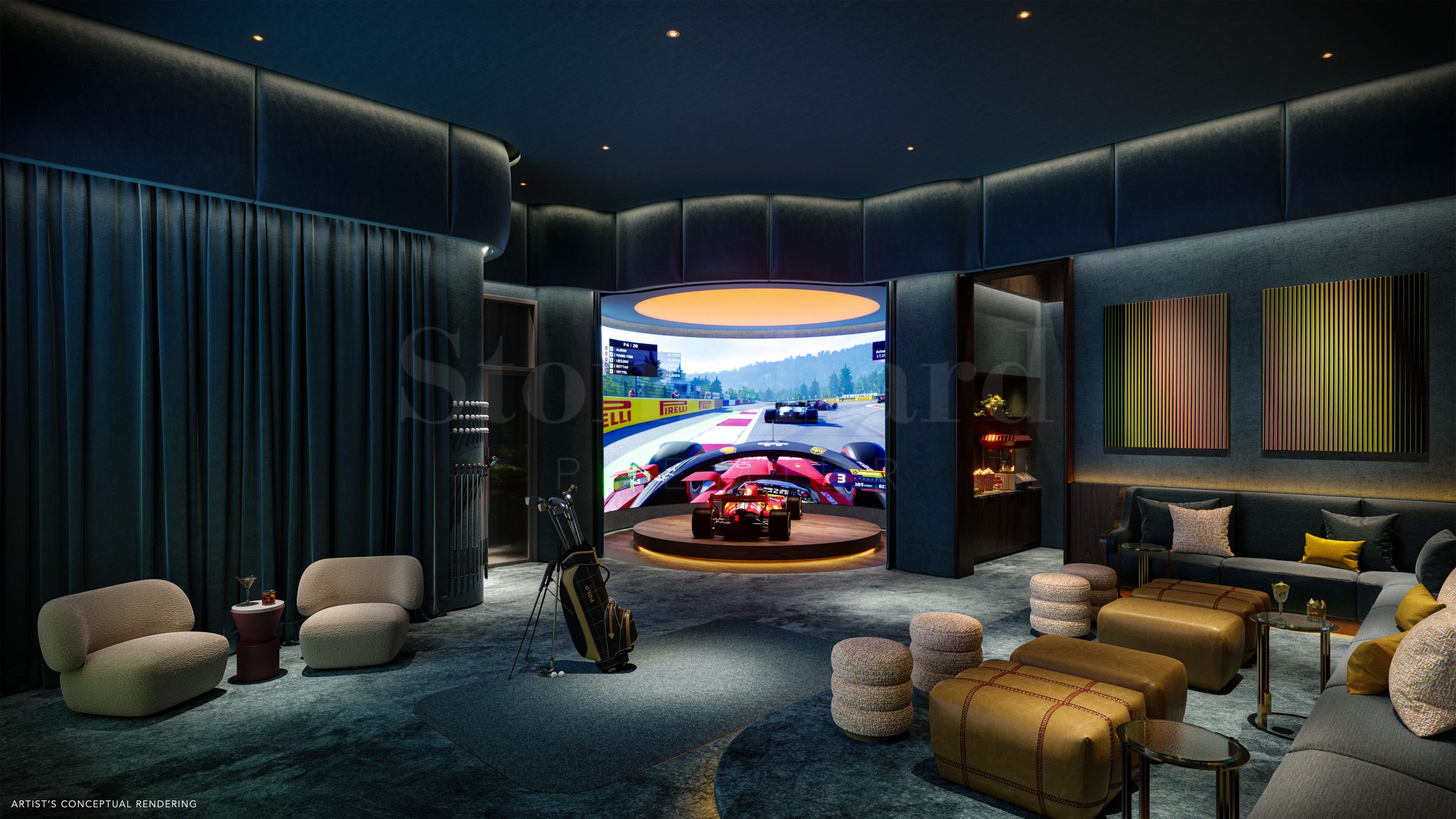 За любителите на активния начин на живот комплексът разполага с модерен фитнес център и специализирана зала със спортни симулатори, където можете да се насладите на голф или ръгби, без да напускате пределите на дома си. Ако работите от вкъщи, на разположение са конферентна зала за бизнес срещи и индивидуални работни пространства, осигуряващи спокойна и продуктивна среда.