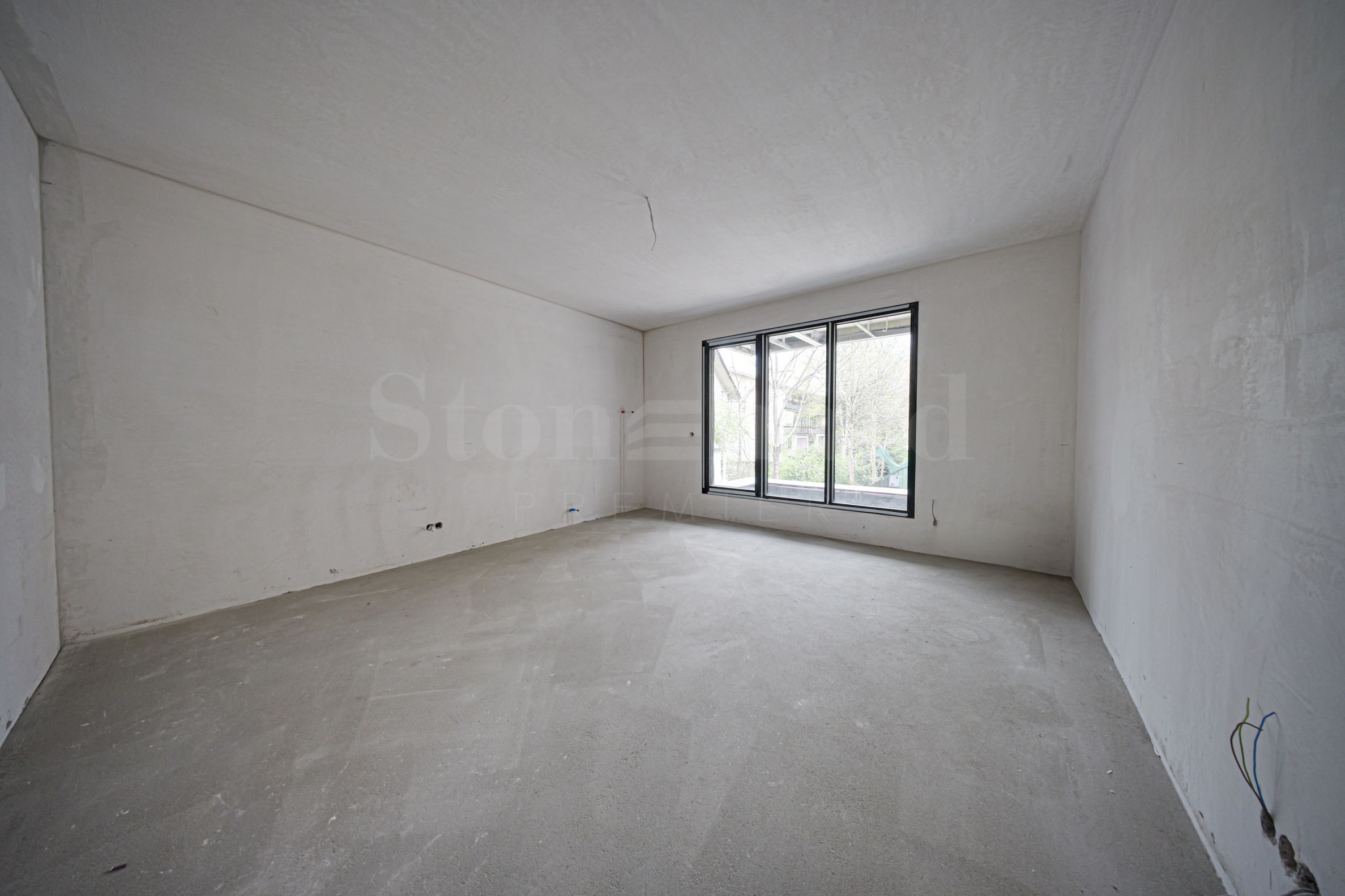 супер просторна всекидневна с кухня и трапезария, с директен излаз във вътрешния двор. Концепция на сградата