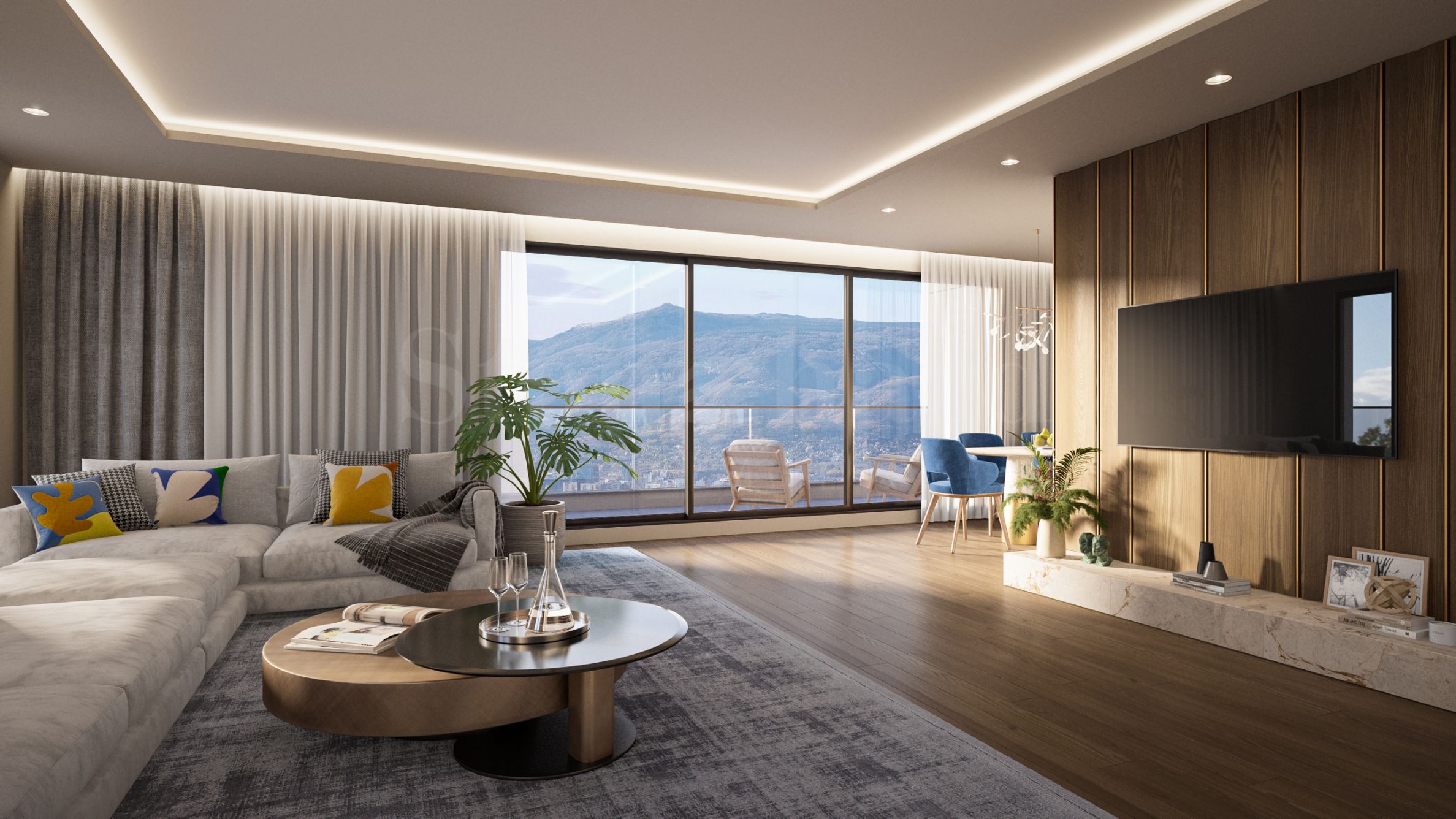 Апартаментите са внимателно проектирани с акцент върху функционалността и удобството – с оптимизирано вътрешно разпределение, което отговаря на различни нужди и стилове. Имотите в продажба са комфортни тристайни и многостайни жилища, от които един разкошен пентхаус с три спални, собствен асансьор в имота и впечатляващи гледки към Витоша и града.