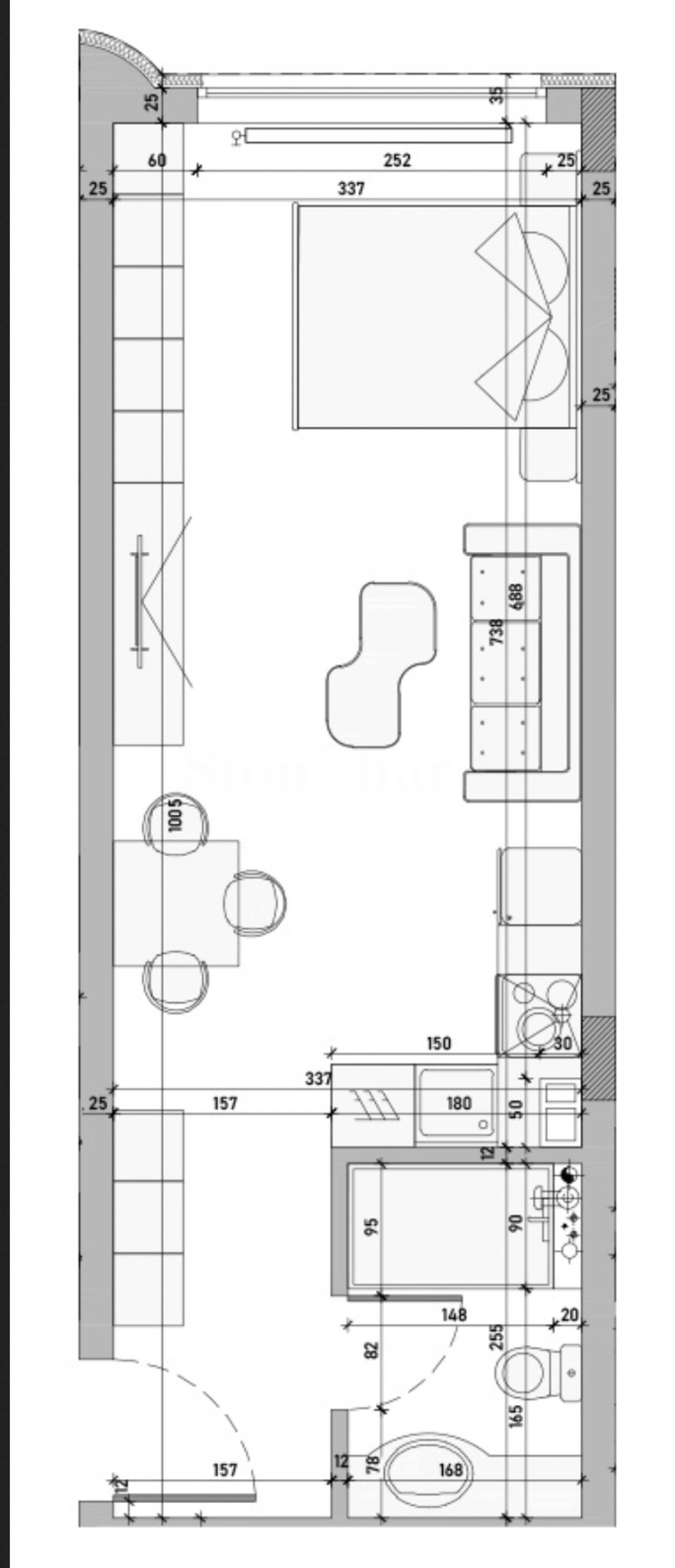 Типове имоти в сградата/комплекса: Едностайни апартаменти