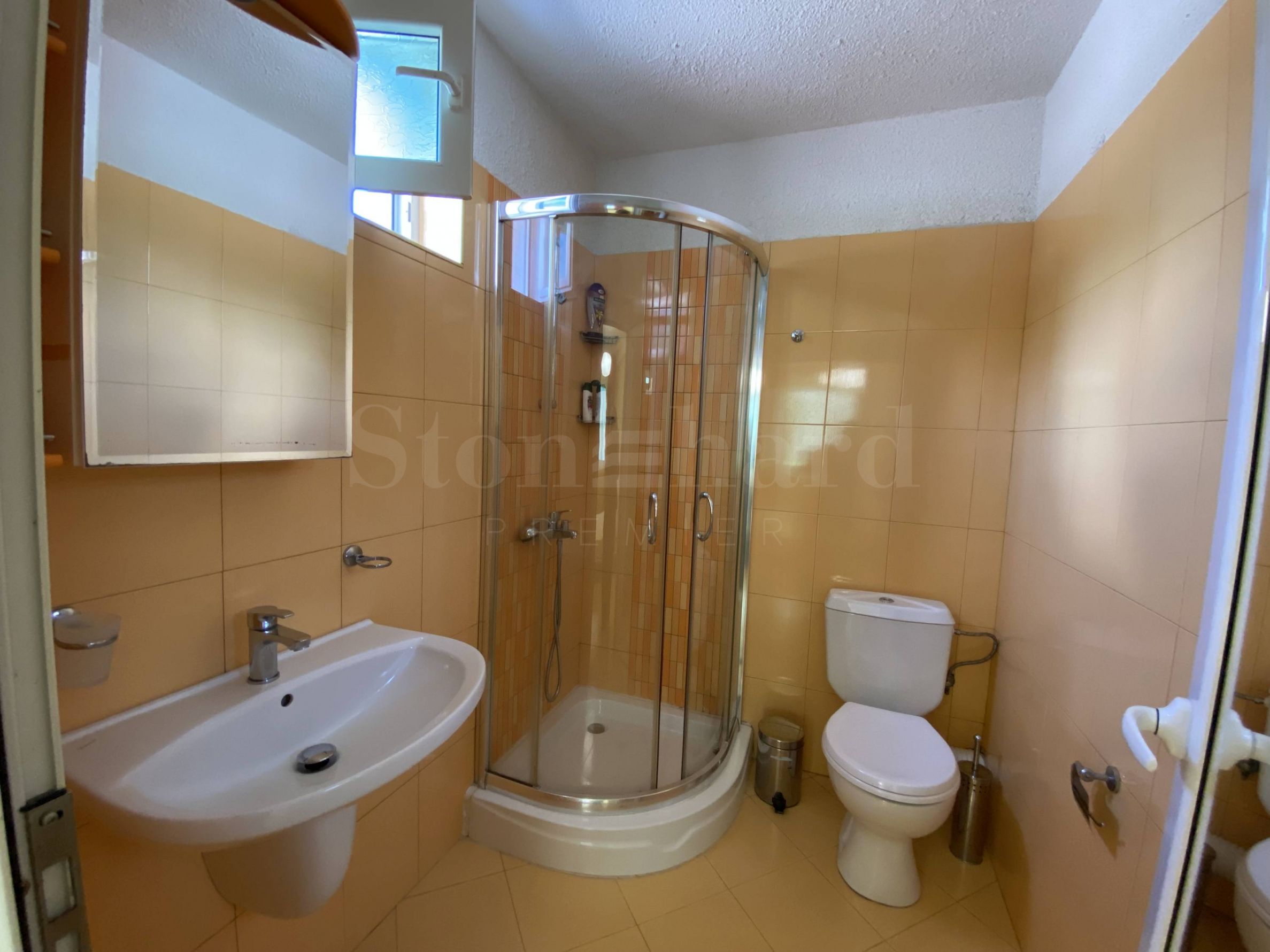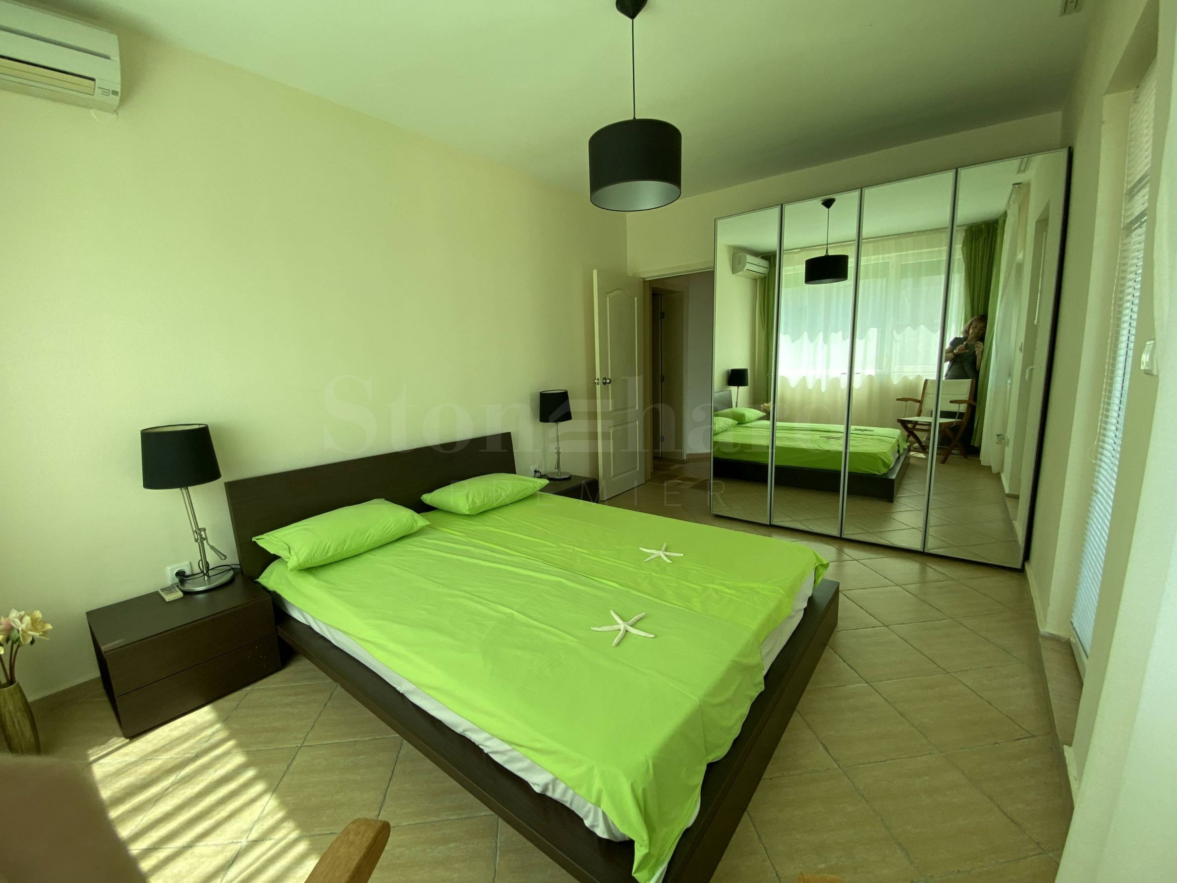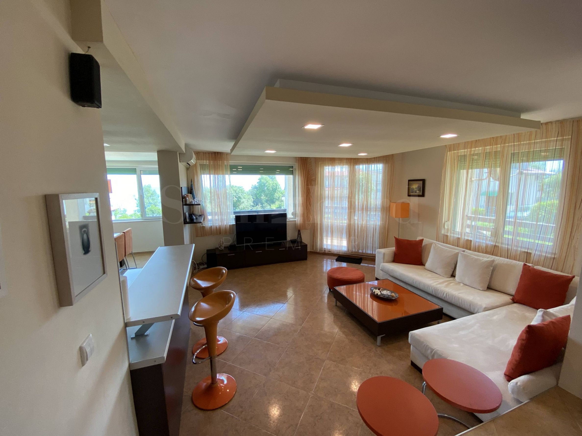 Жилището е елегантно и добре обзаведено, оборудвано с висок клас техника. Има поставени външни ролетни щори. На терасата е монтирана външна стълба водеща към двора и басейна на комплекса. Подходящо е както за лично ползване, сезонно или целогодишно, така и за отдаване под наем.