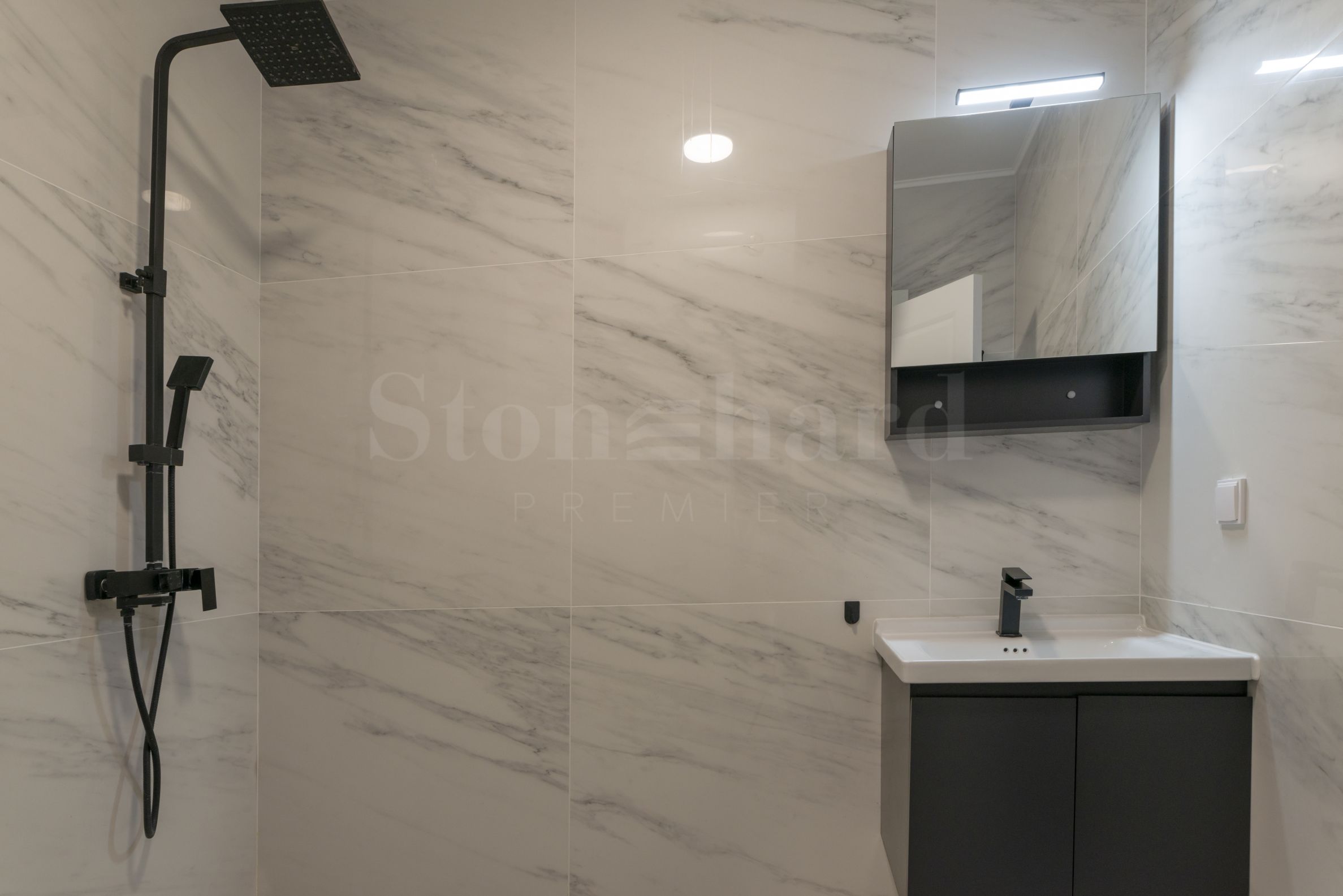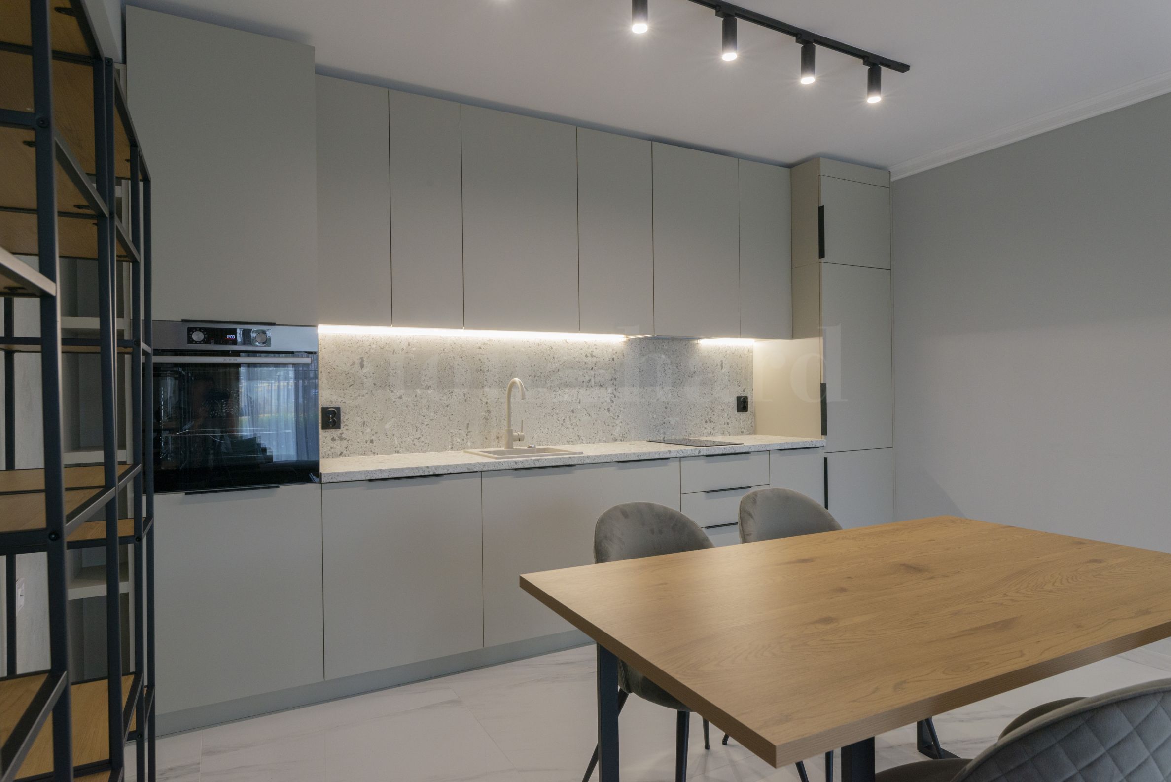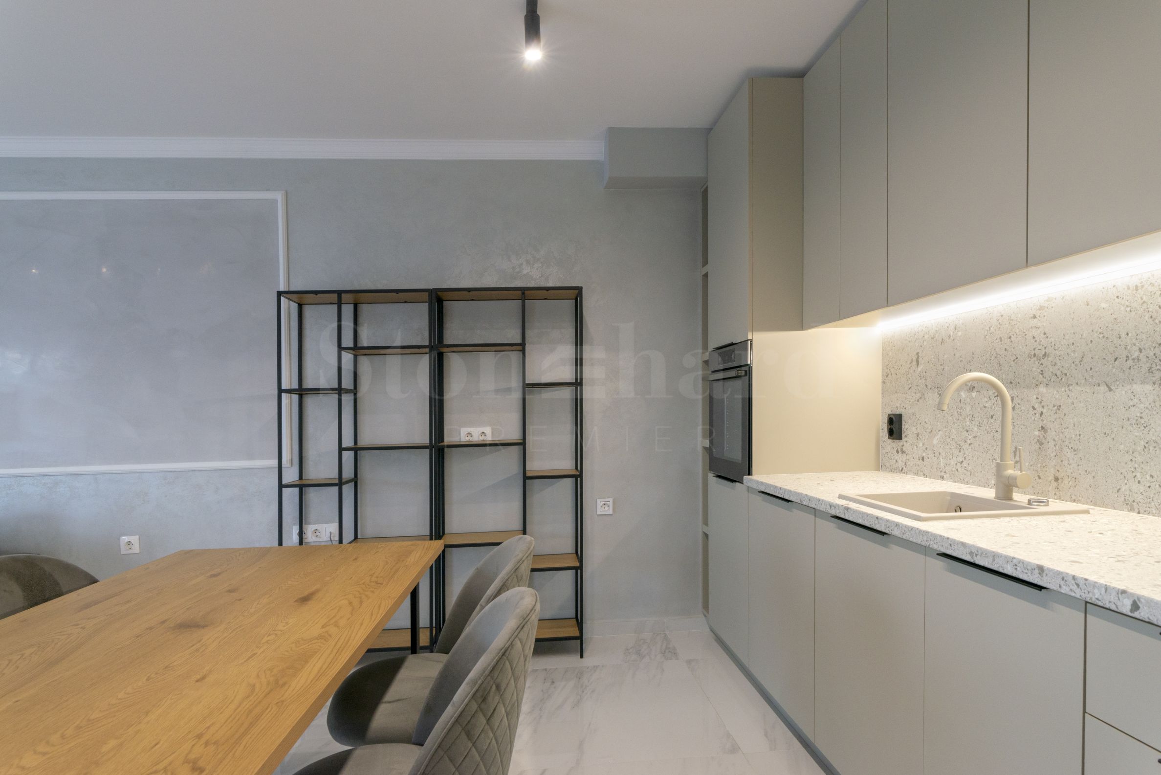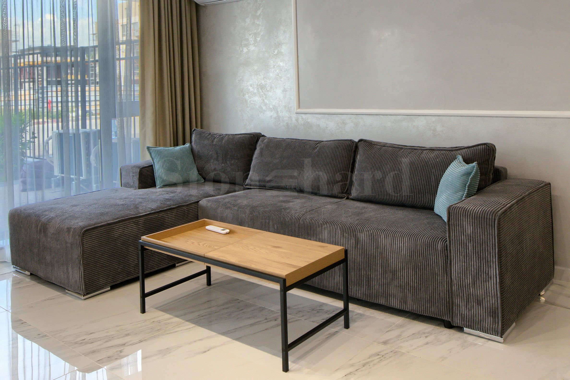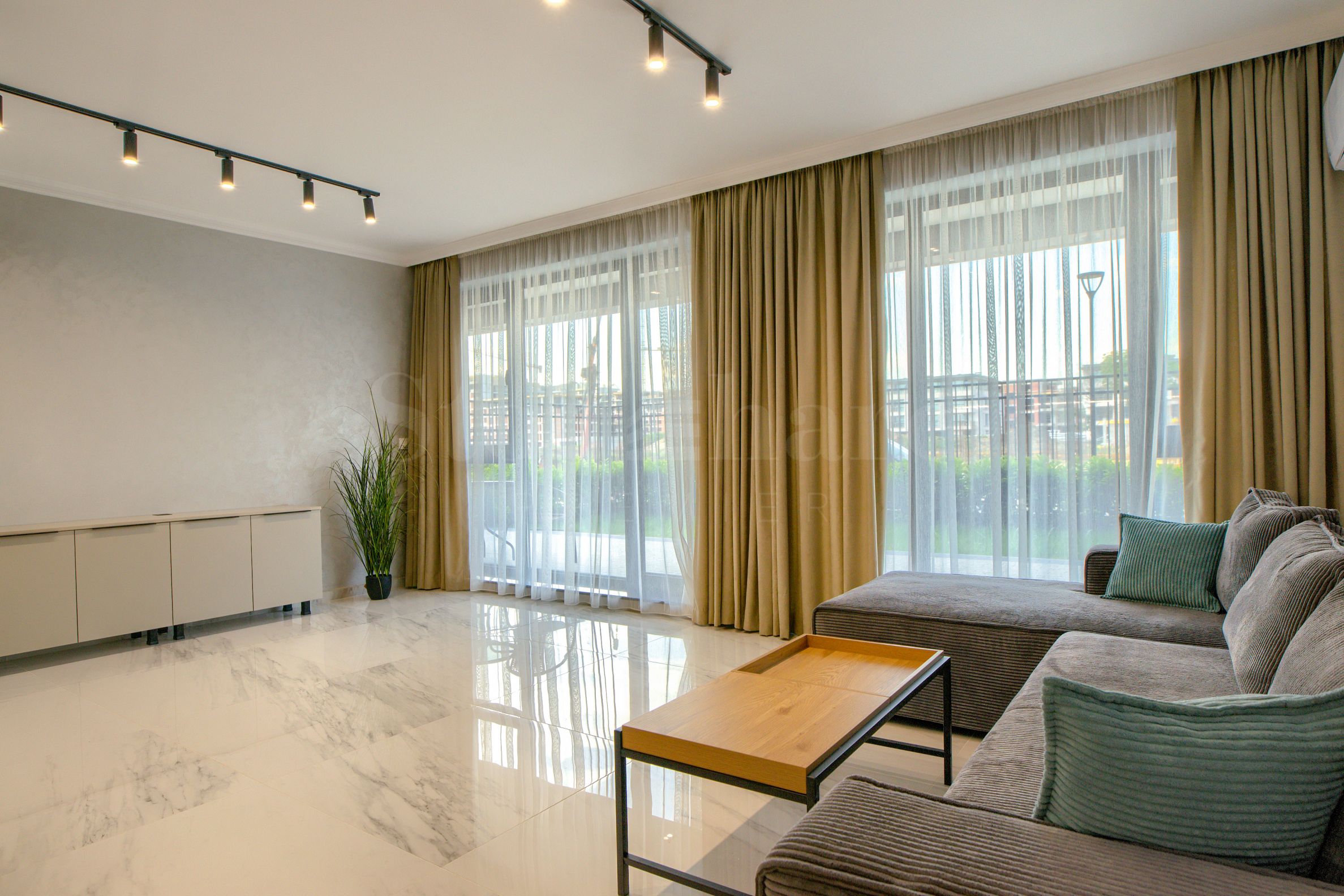 баня с тоалетна.Апартаментът е изключително уютен и елегантен, завършен с внимание към всеки детайл. Интериорът е решен в светли и топли тонове, които придават усещане за простор и хармония във всяко помещение.