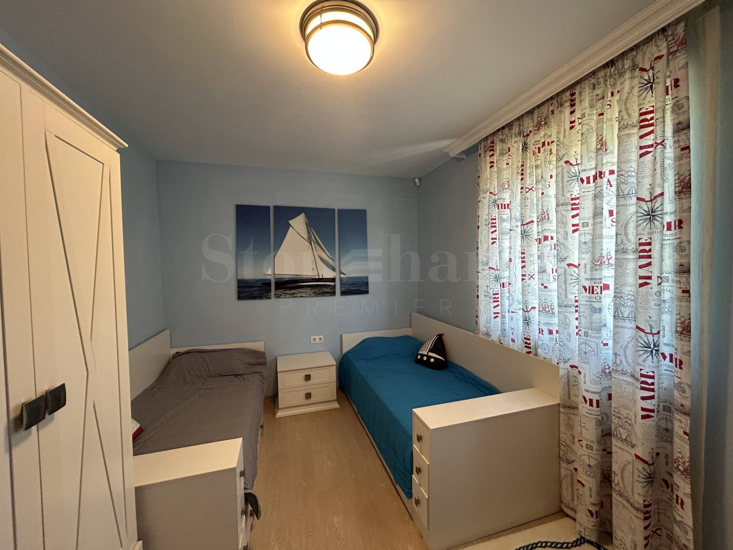 • втори етаж: три спални, две бани с тоалет, тераса.