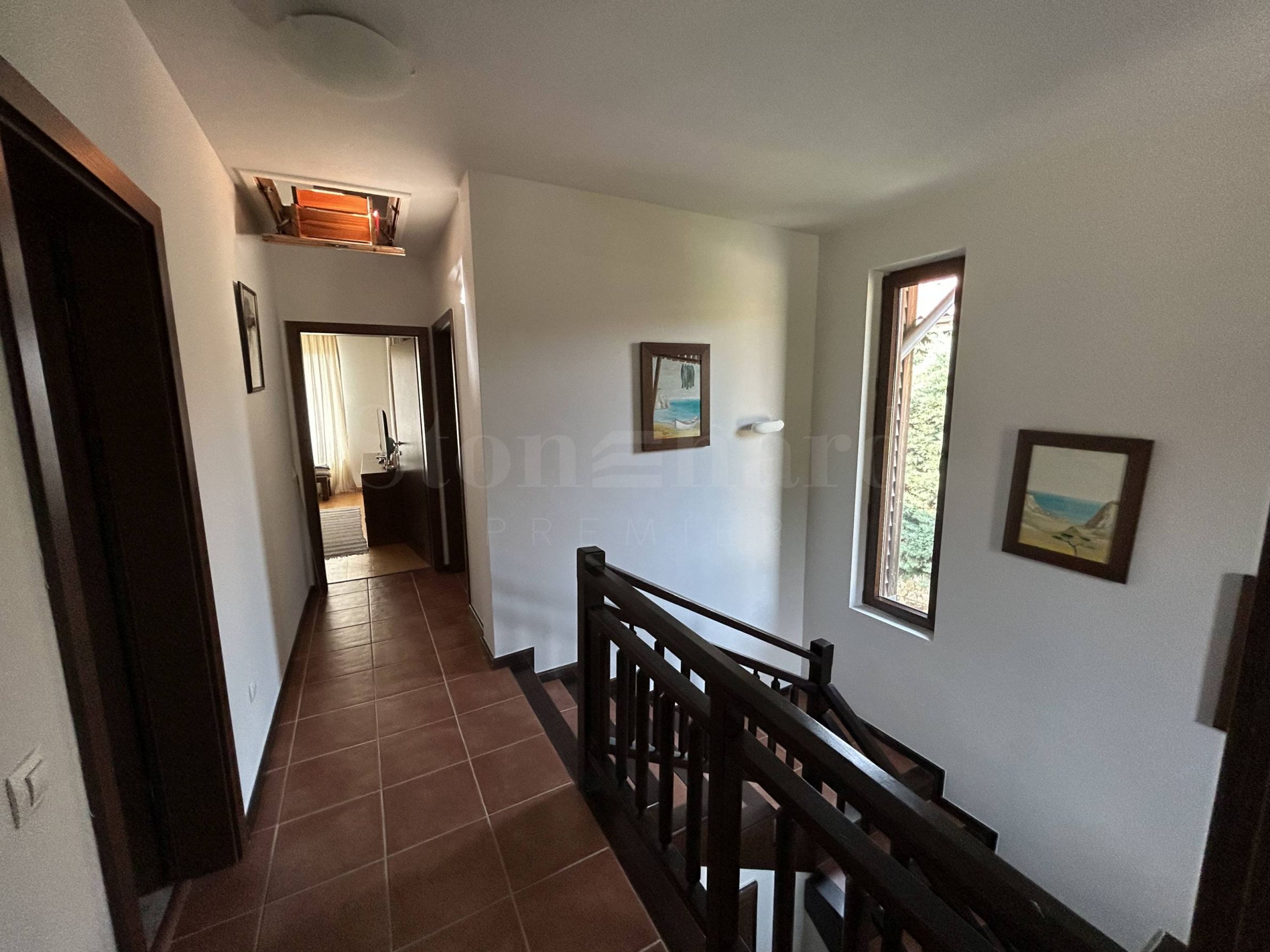 • втори етаж: три спални, две бани с тоалет, тераса.