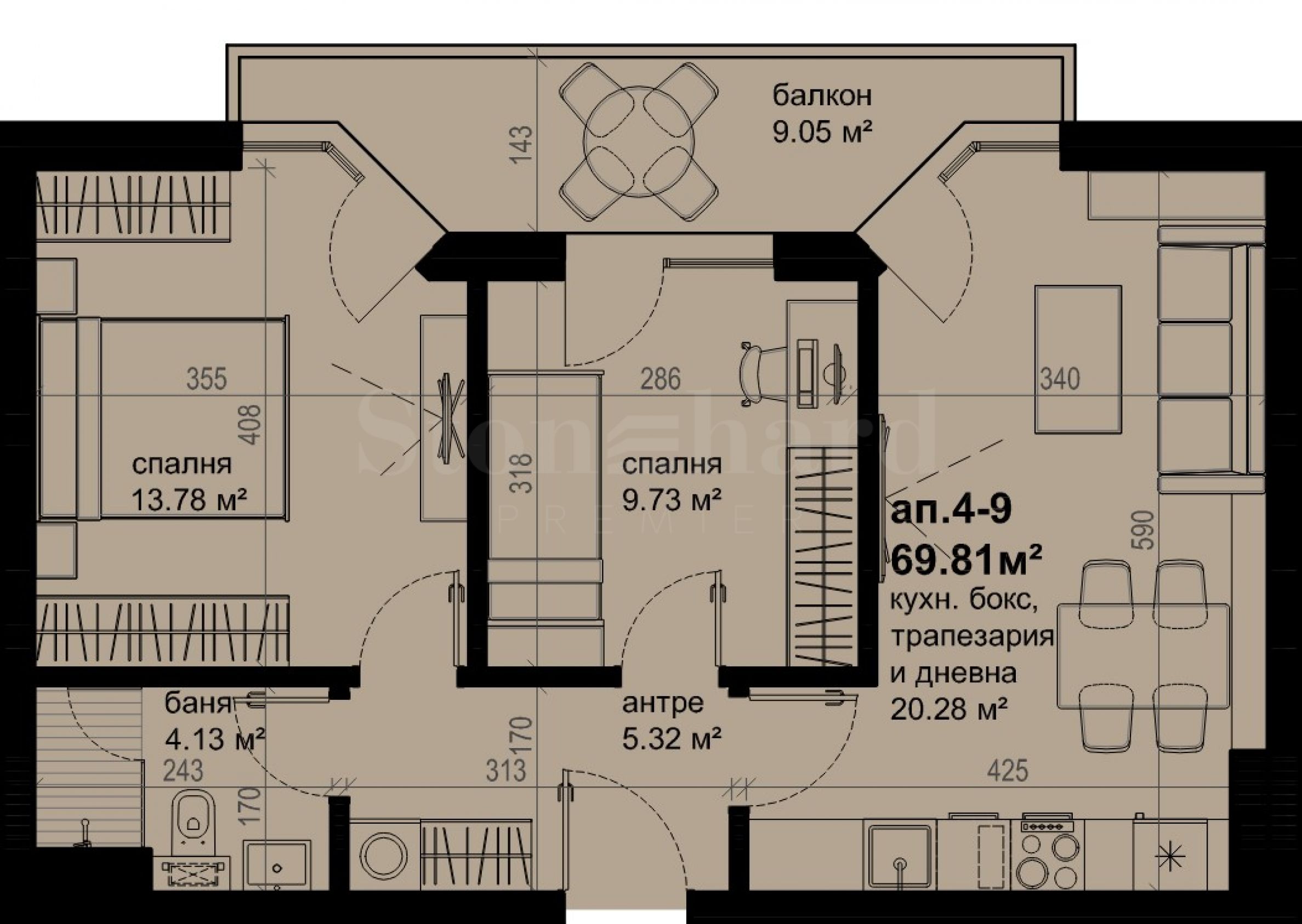 Издава се в степен на завършеност по БДС, на шпакловка и замазка, с френски прозорци, шумоизолация, висококачествени материали и висока енергийна ефективност.
