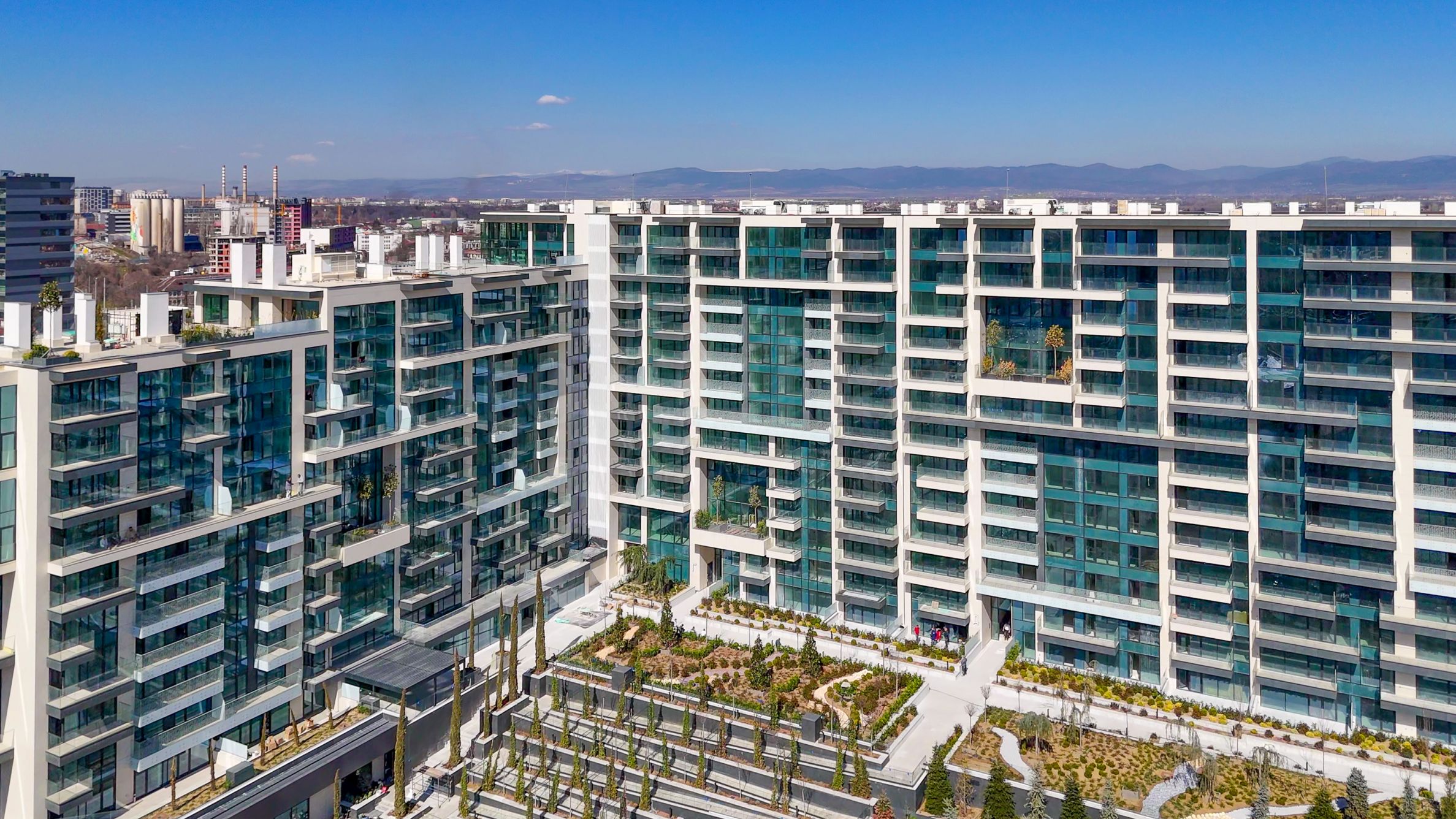 Сградата е с подземна квадратура от 25 833,30 м2, надземни нива – 44 065,59 м2 и общо РЗП – 69898,89 м2. Резиденцията разполага със собствен вътрешен парк, озеленени интериорни пространства и общи тераси за отдих и забавление. На партерно ниво са предвидени супермаркет Кауфланд, козметичен център, кафене, магазини и фитнес на две нива.