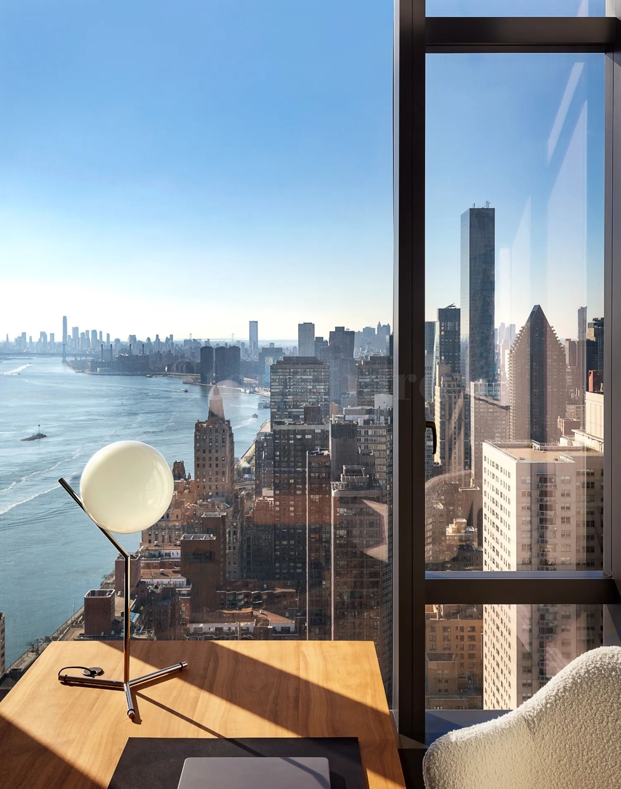 Sutton Tower е най-високата жилищна сграда в Източен Манхатън – извисяваща се на 259 метра с внушителните 80 етажа. Проектирана от Томас Юл-Хансен – визионер в световната архитектура – сградата съчетава артистичен подход с функционалност. Вдъхновена от взаимодействието между природа, изкуство и пътуване, кулата впечатлява със своята елегантна фасада, облечена в стъкло и баварски варовик. Този органичен и естетически подход продължава и в интериора, където преобладават натурални материали и топли, земни нюанси.