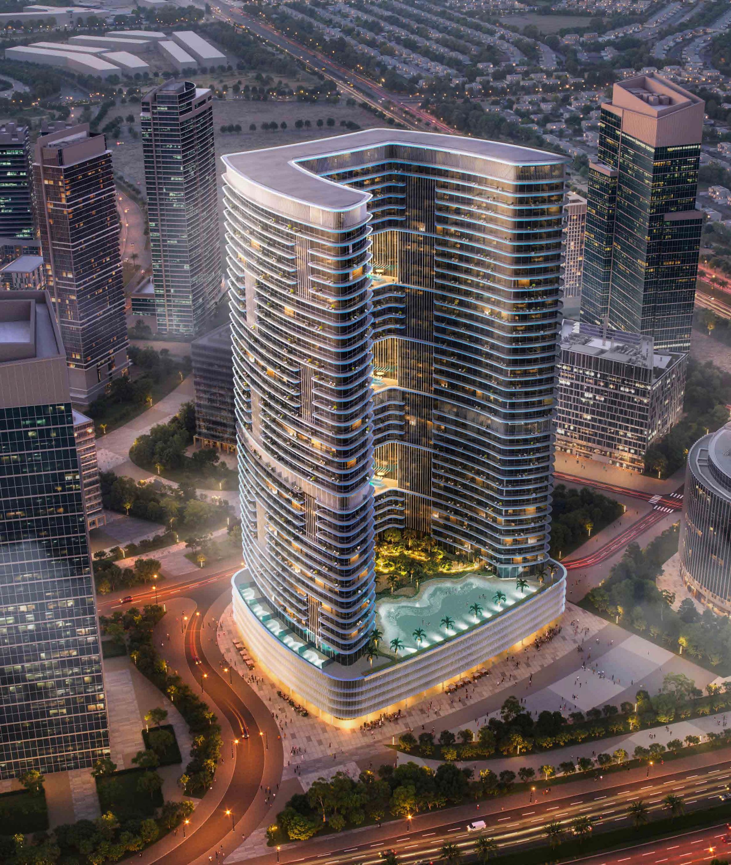 Binghatti Hill Views е стратегически разположен в Dubai Science Park - процъфтяваща общност, известна с голямата си популярност и търсене в Дубай, което я прави доходоносна гореща точка за инвестиции в недвижими имоти. Проектът се гордее с добра свързаност и грандиозно местоположение в непосредствена близост до основните бизнес зони, дестинации за шопинг и релакс, училища и обществени паркове.
