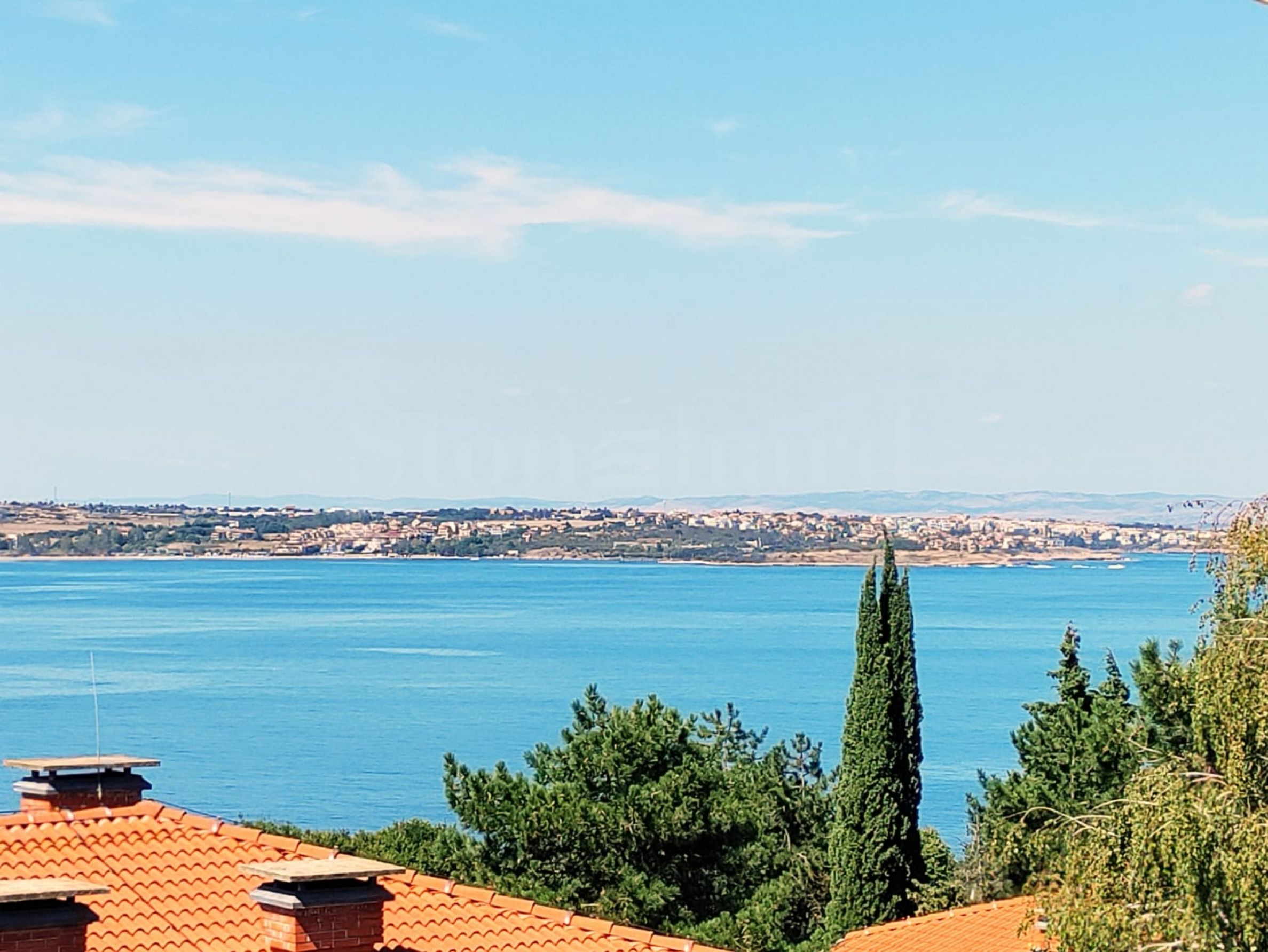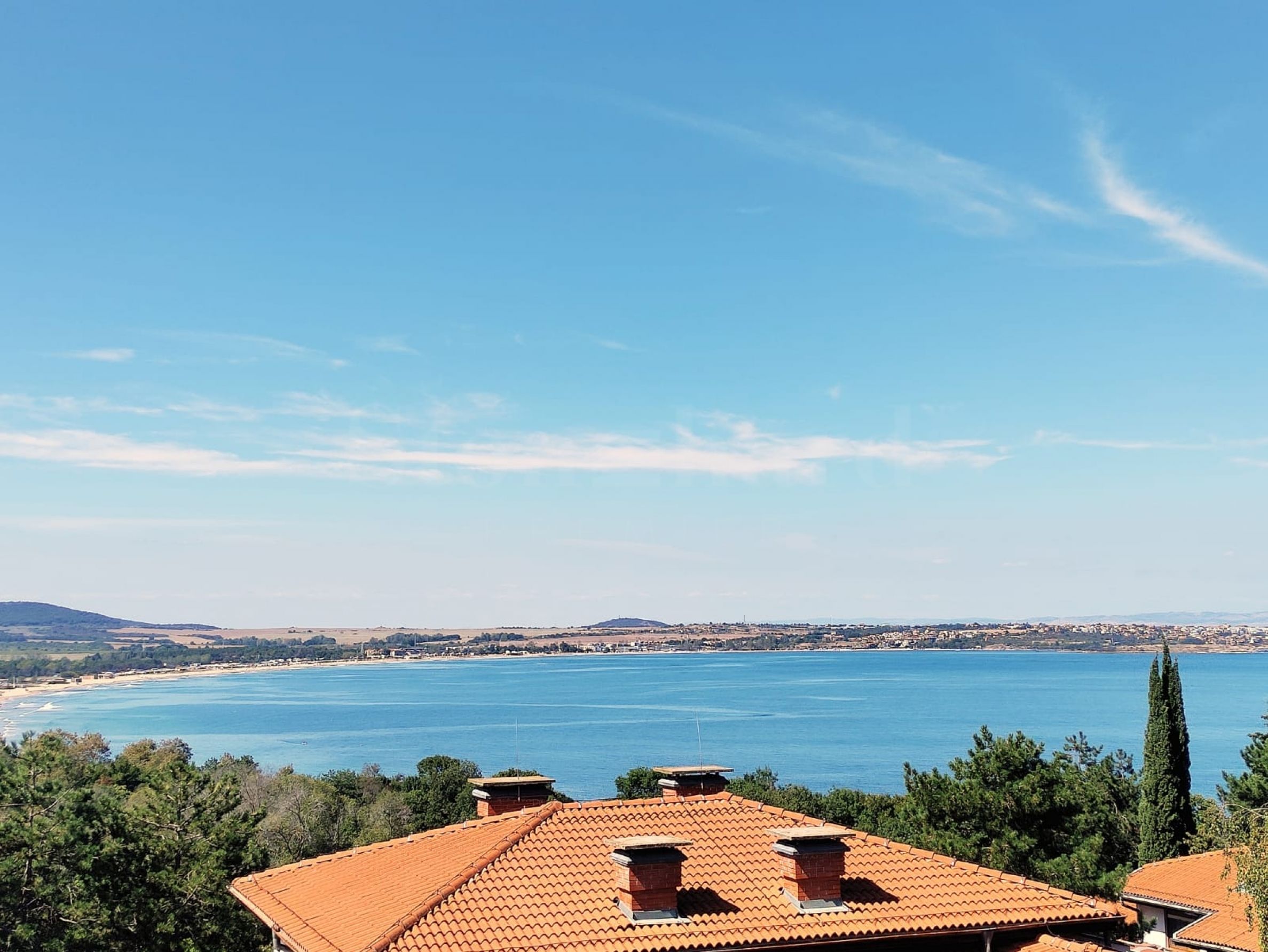 От терасата се открива зашеметяваща панорамна гледка към морето, залива и планината.