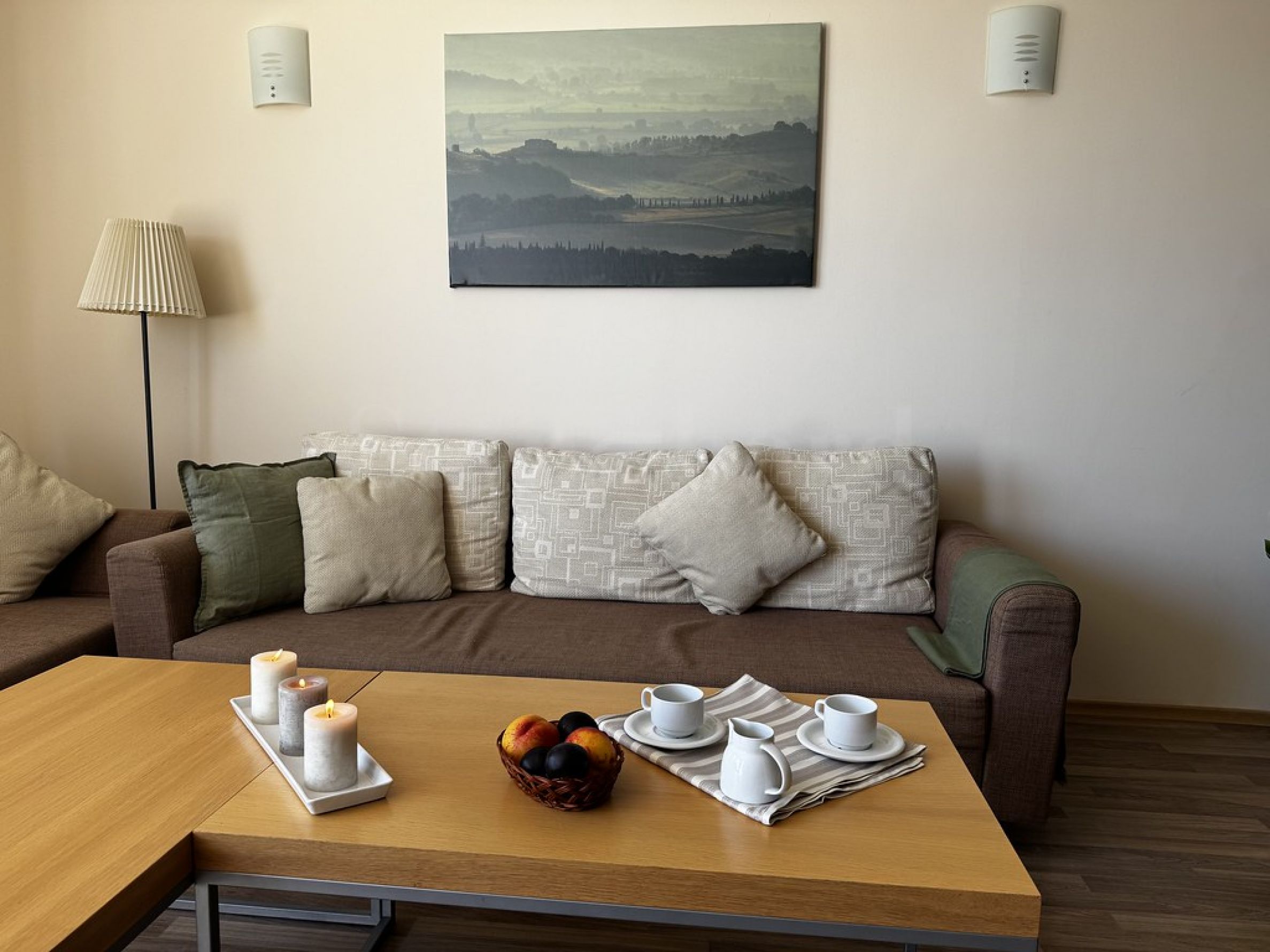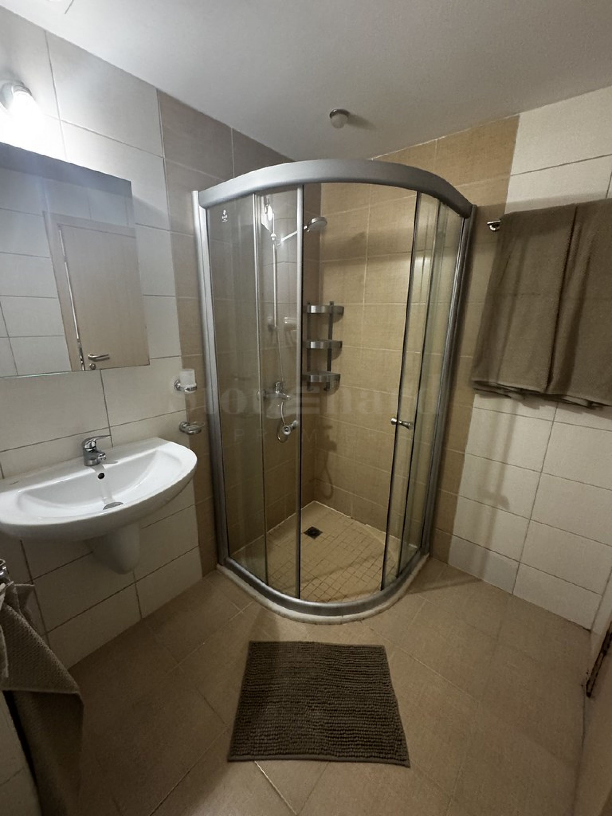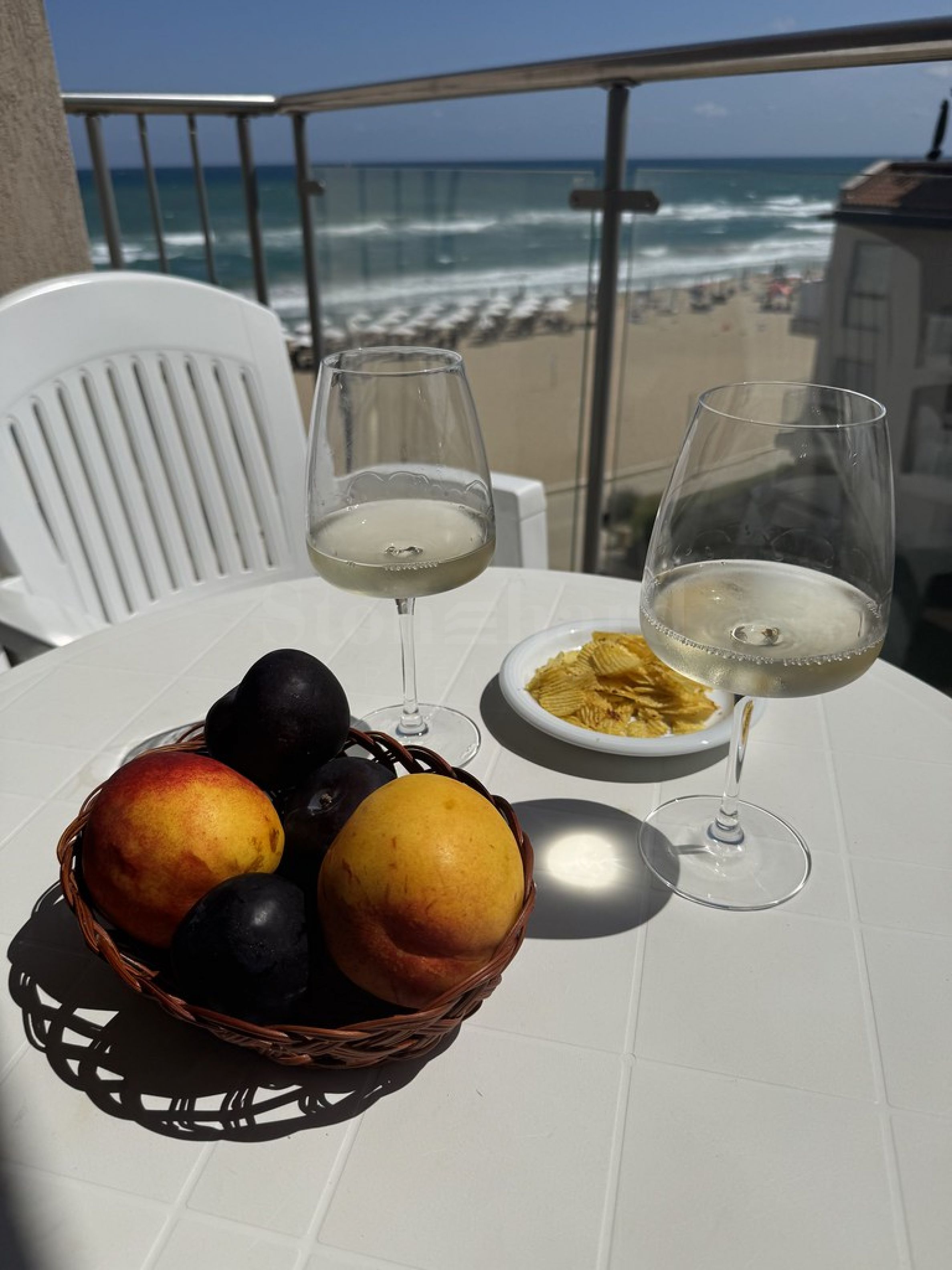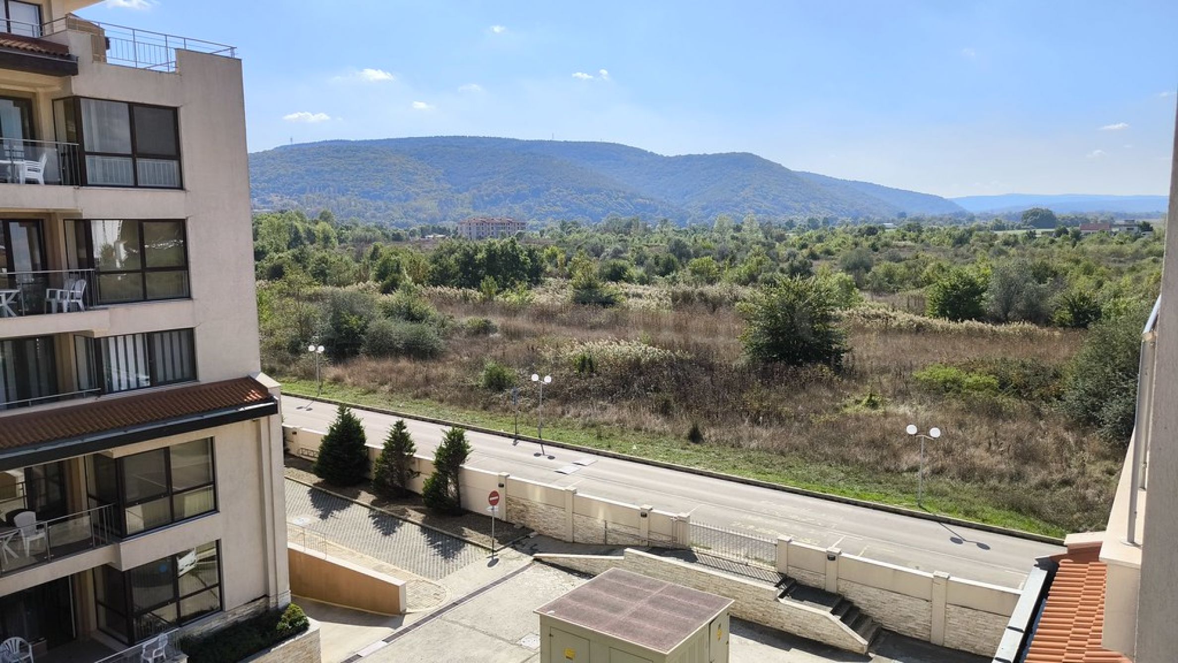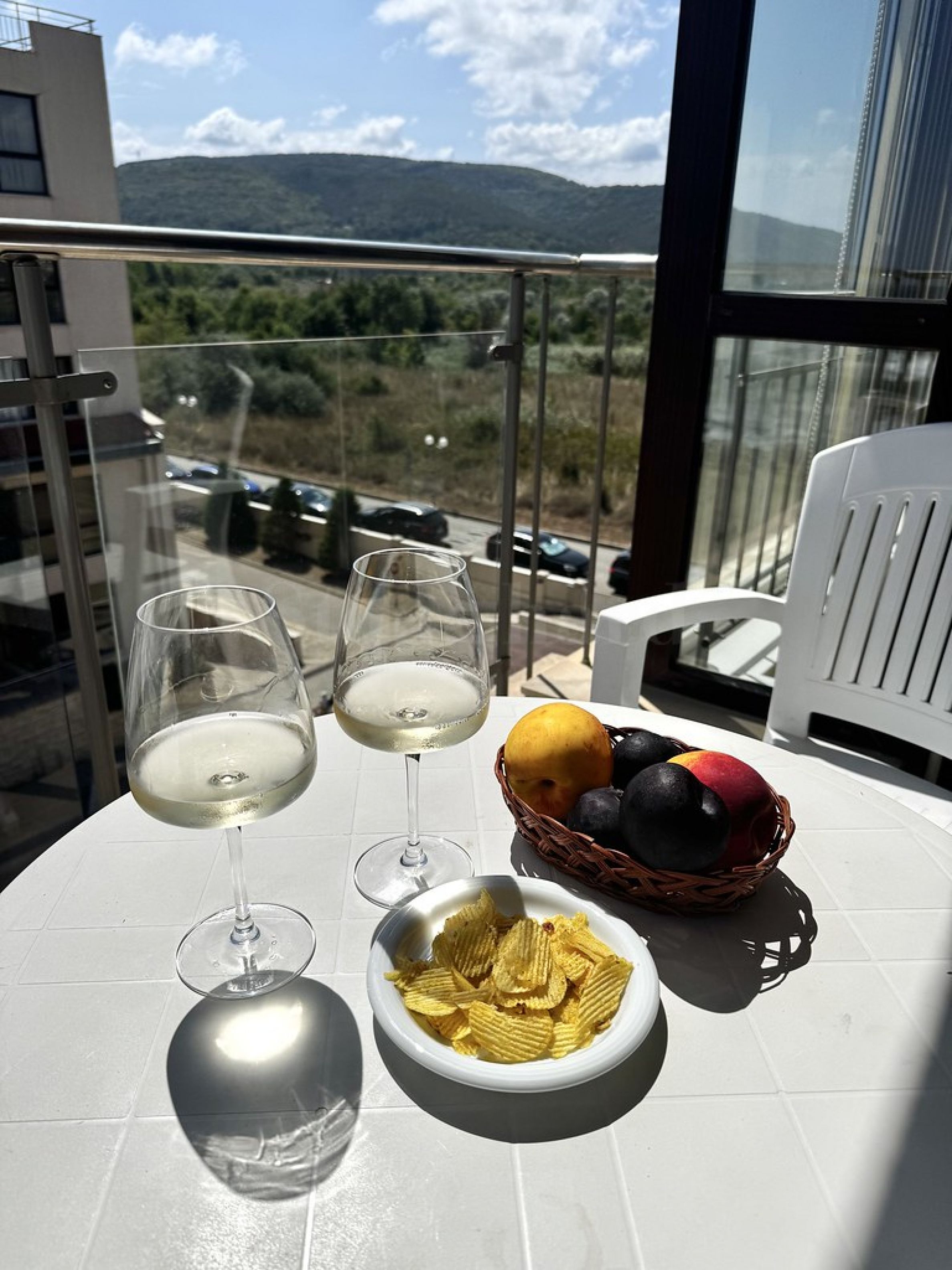 • тераса с достъп от двете стаи.От дивана в дневната се открива директна морска гледка, а от терасата може да се насладите както на морето, така и на планините.