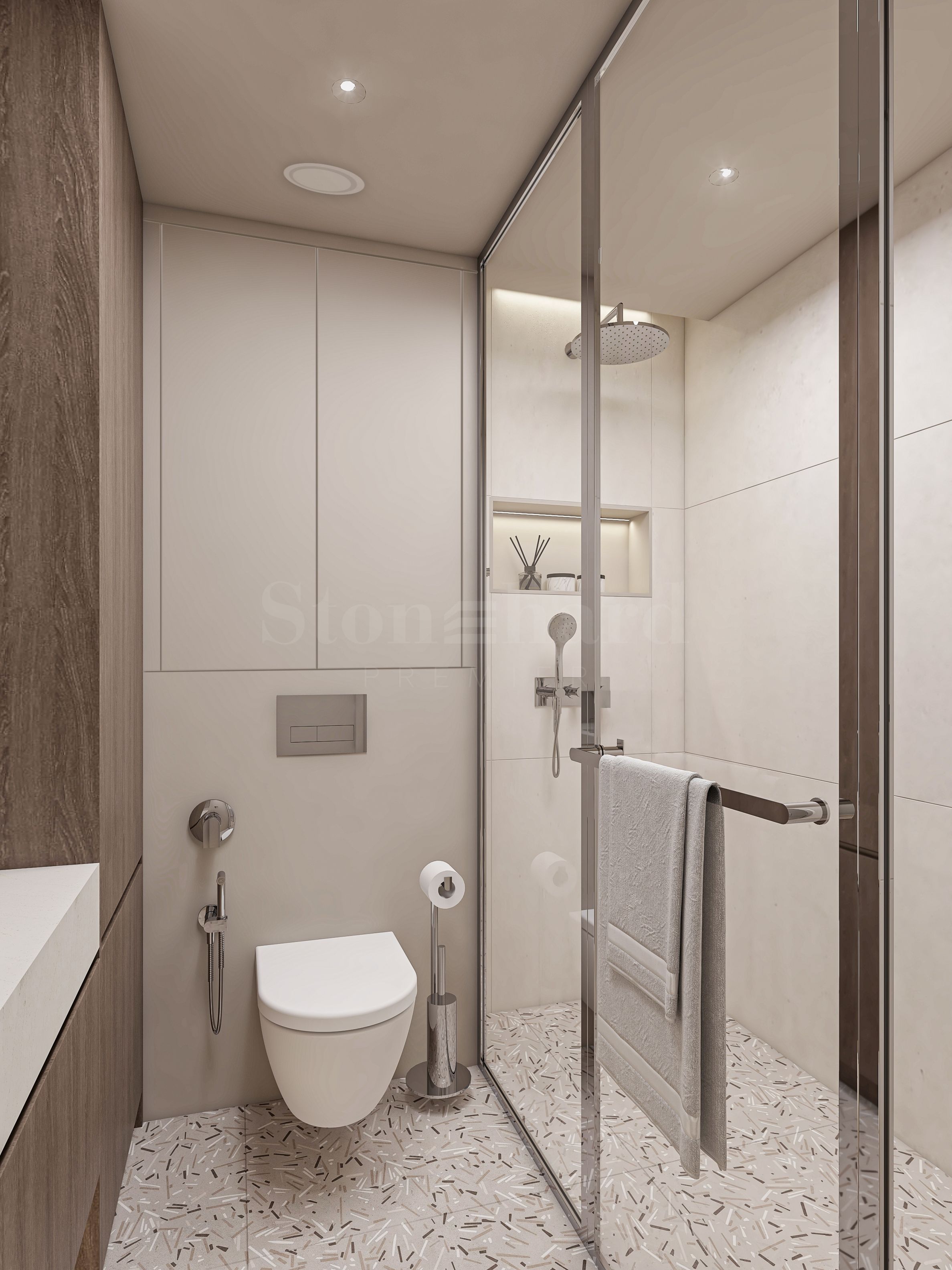 Италианската вентилируема фасада с лепени широкоформатни керамични плочи от ITALGRANITI предлага надеждна защита от влага и резки температурни промени, гарантирайки отлична шумоизолация и максимален комфорт. Тя допринася и за по-висока енергийна ефективност, а инсталираната на покрива фотоволтаична система осигурява до 30% по-ниски енергийни разходи. Произведената енергия ще обслужва общите части на сградата и ще повиши цялостната стойност на имота.