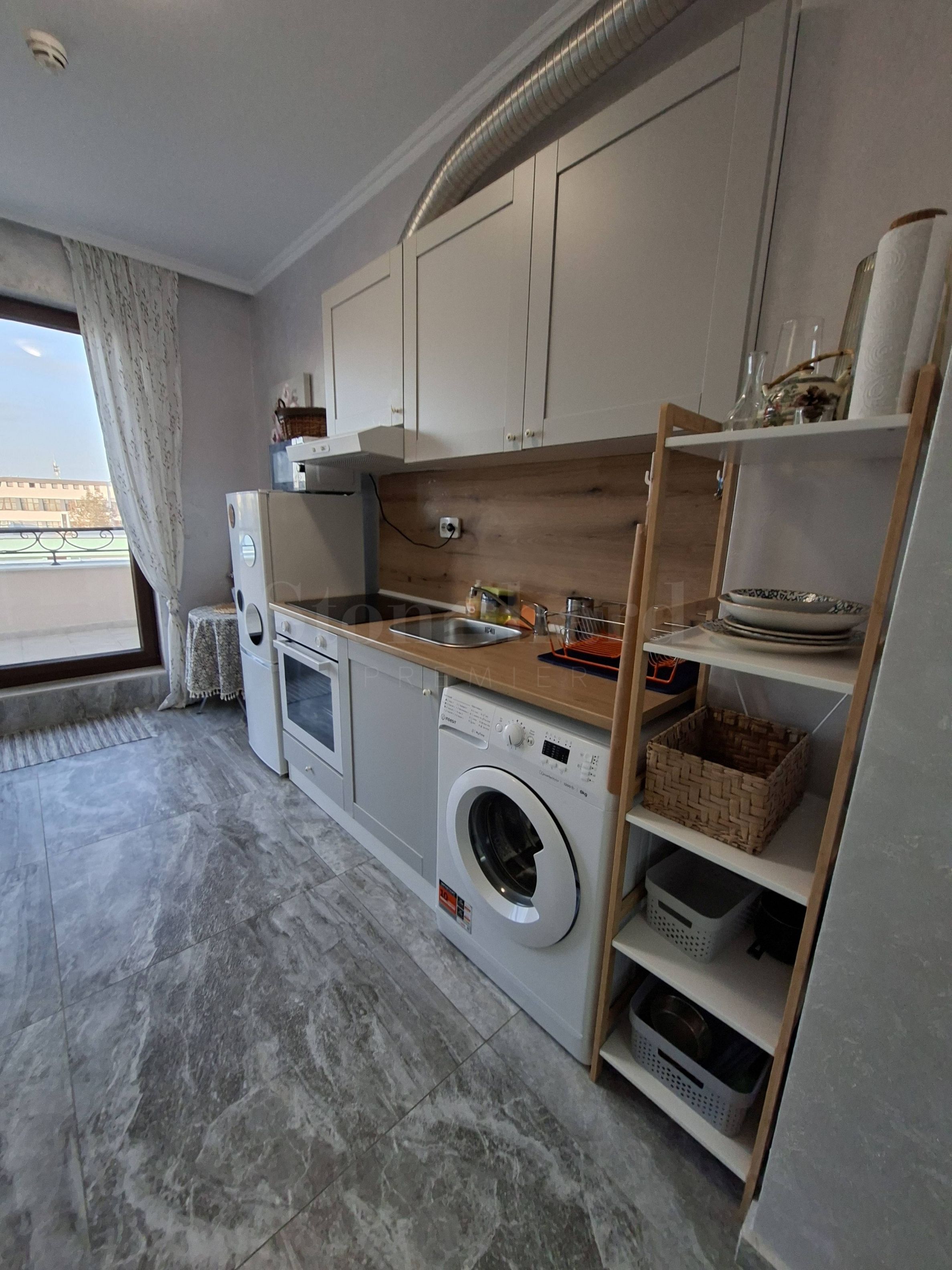 Жилището е напълно обзаведено и оборудвано с нови мебели и техника, и е готово за нанасяне. Подходящо е както за лично, целогодишно ползване, така и за инвестиция. Може да бъде преустроено в двустаен апартамент.