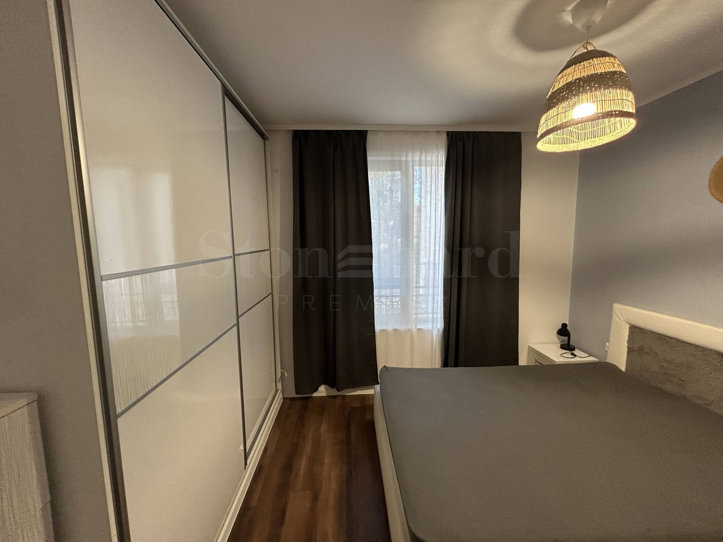 Жилището се намира на 1-ви етаж, напълно обзаведено и оборудвано, готово за нанасяне. Пространството е разпределено функционално между светла дневна с напълно оборудван кухненски кът, зона за хранене, кът за отдих, обособена спалня , баня и тераса. Панорамните прозорци осигуряват естествена светлина през целия ден и създават усещане за простор.