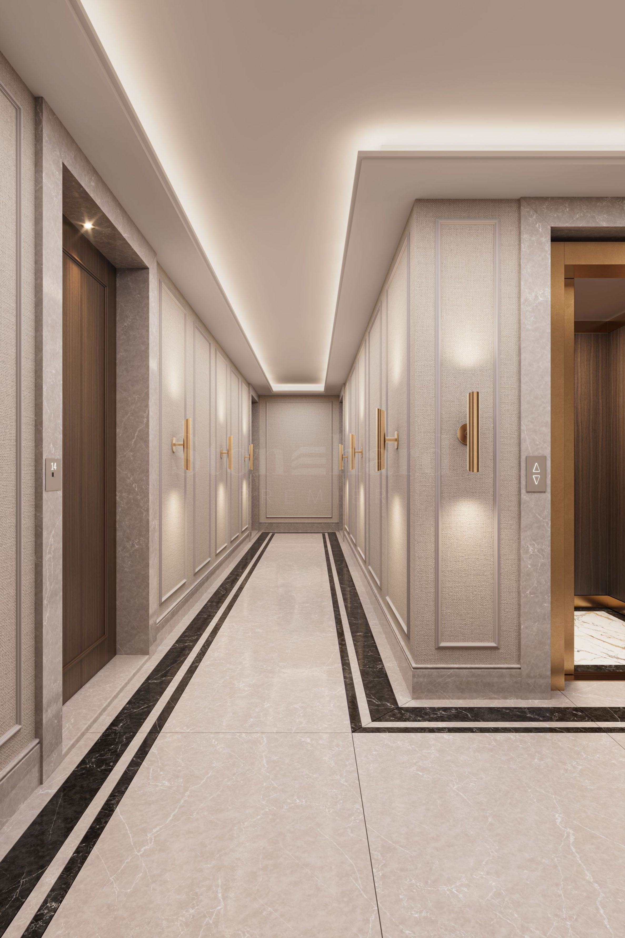 • Луксозни входни лобита с мрамор, MDF ламперии, камина и мека мебел;