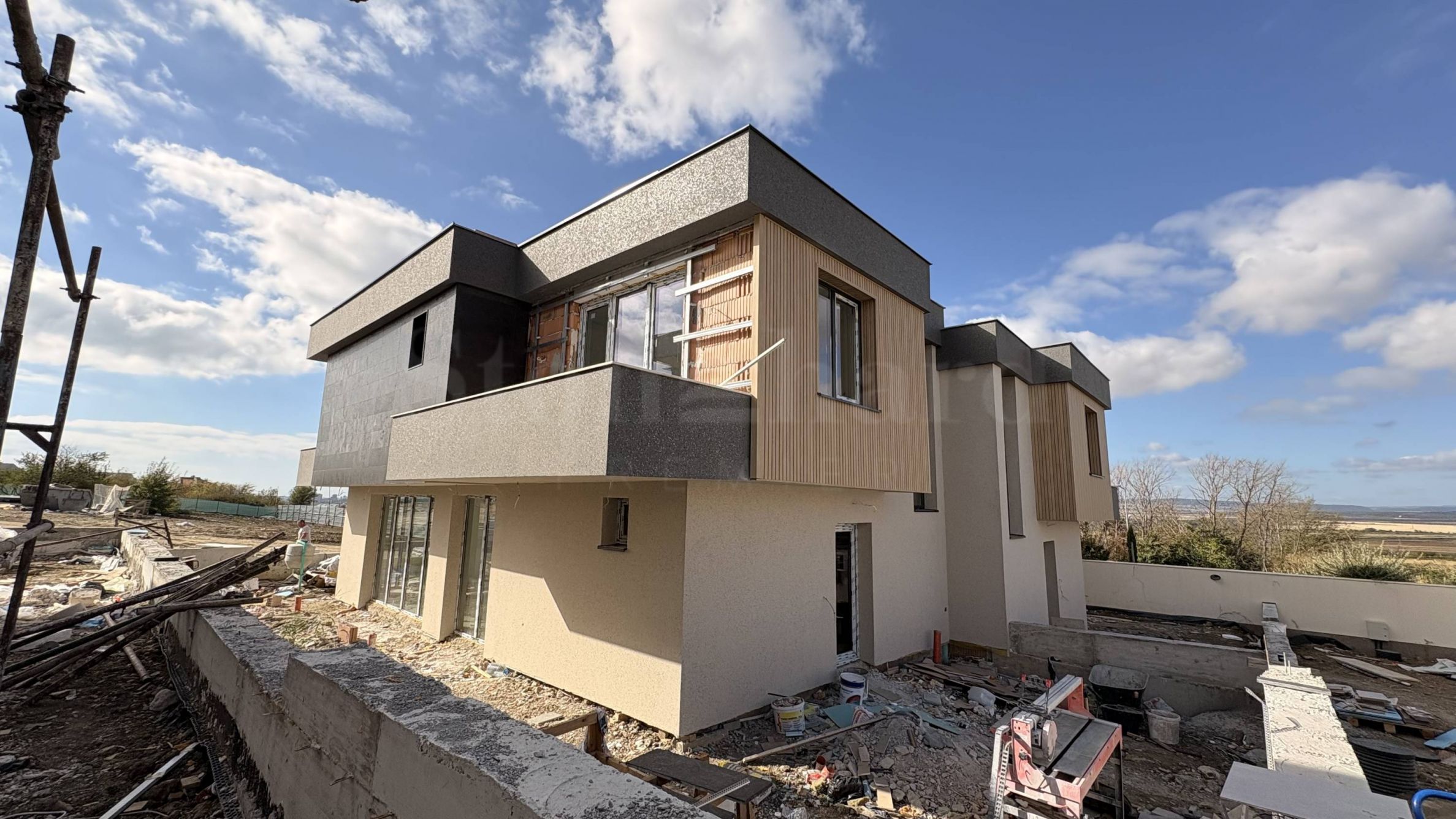 Представяме за продажба двуетажна къща с модерна визия, част от затворен комплекс, разположен сред зеленината на еко-район близо до Слънчев бряг, във вилната зона на село Кошарица.