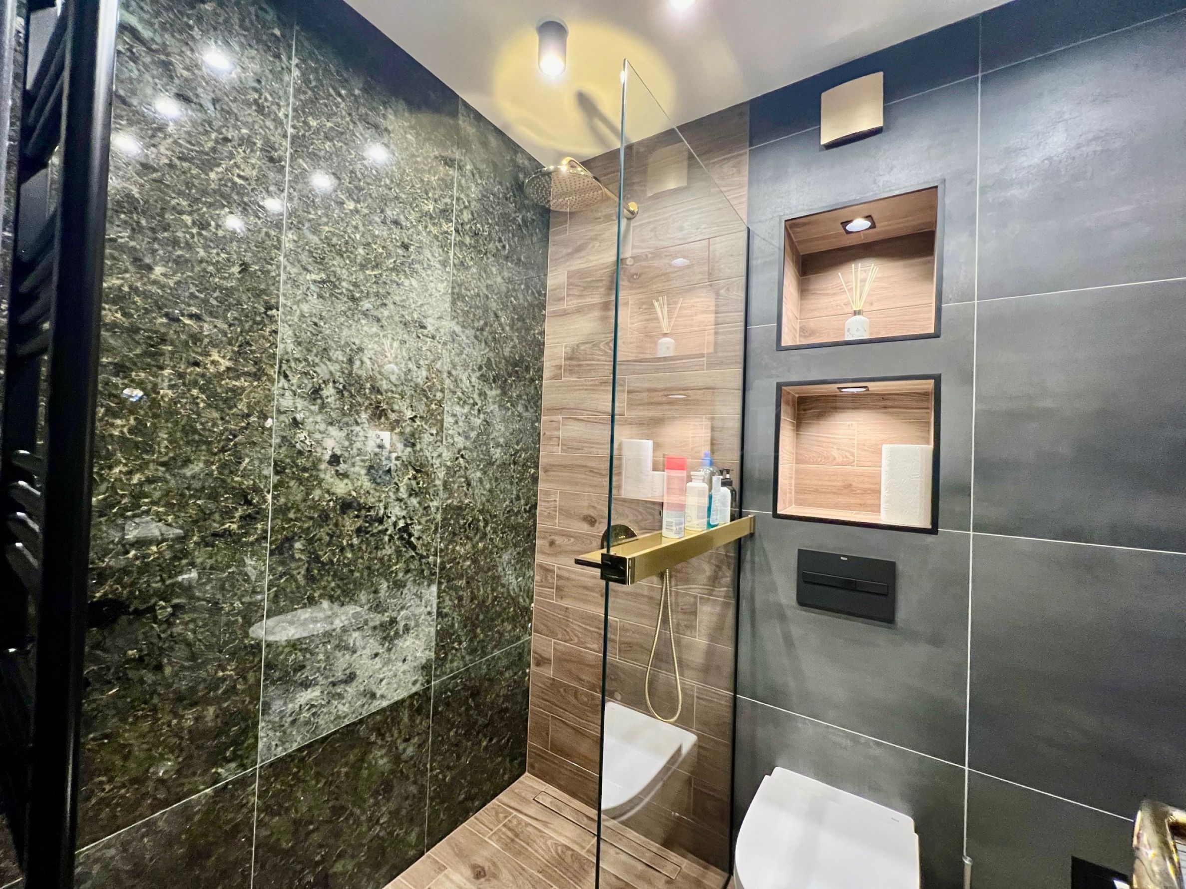 Подовите настилки са от висококачествен ламиниран паркет, а баните - италиански гранитогрес.
