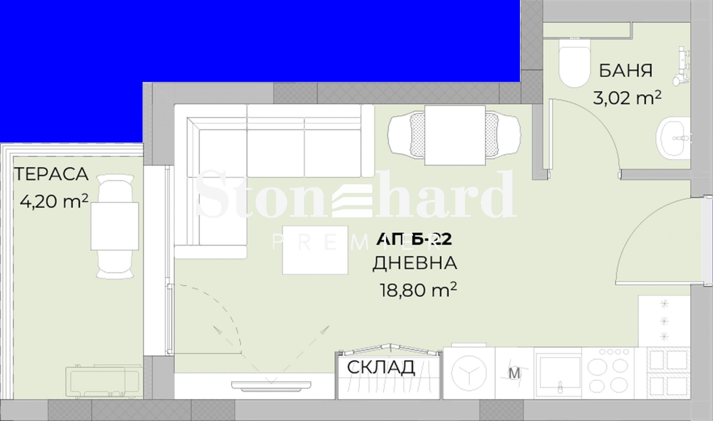 Типове имоти в сградата/комплекса: Едностайни апартаменти