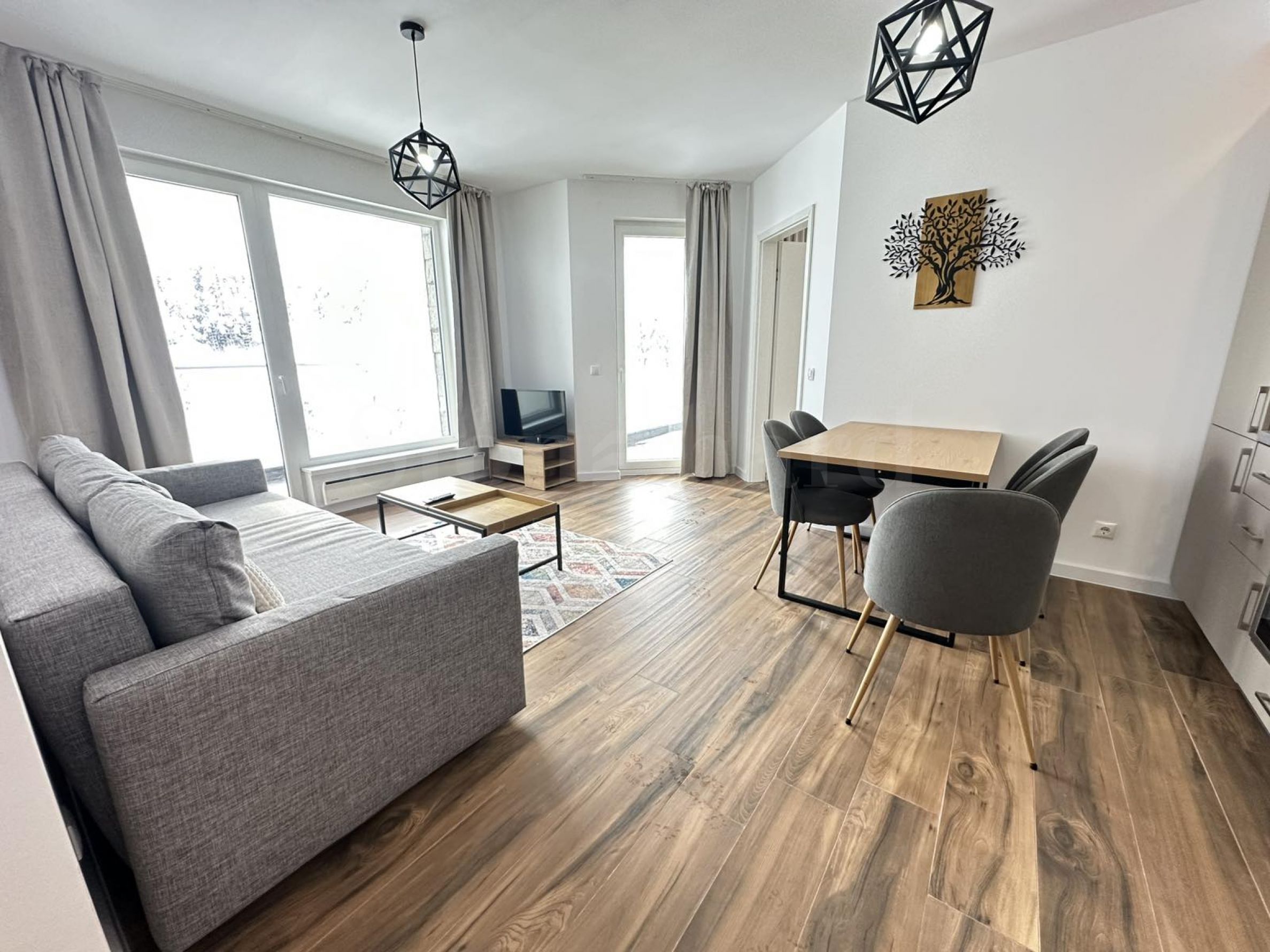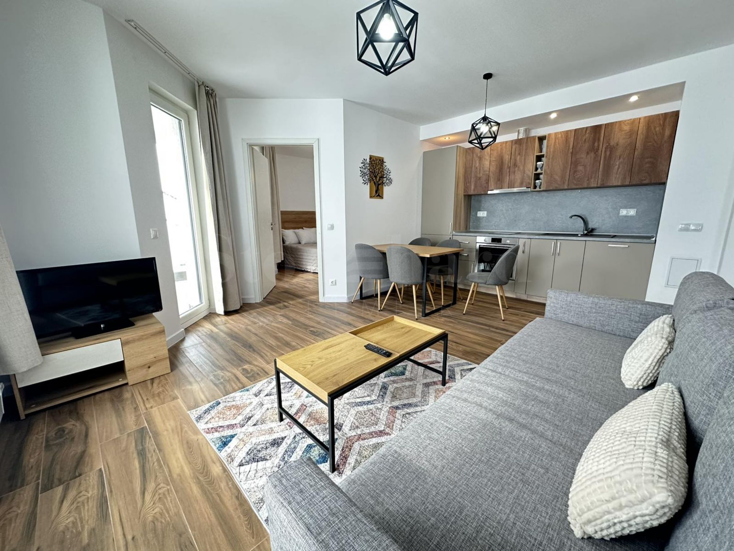 Просторната всекидневна разполага с мека мебел и кухня, която е напълно оборудвана с висок клас техника: фурна, котлони и хладилник.