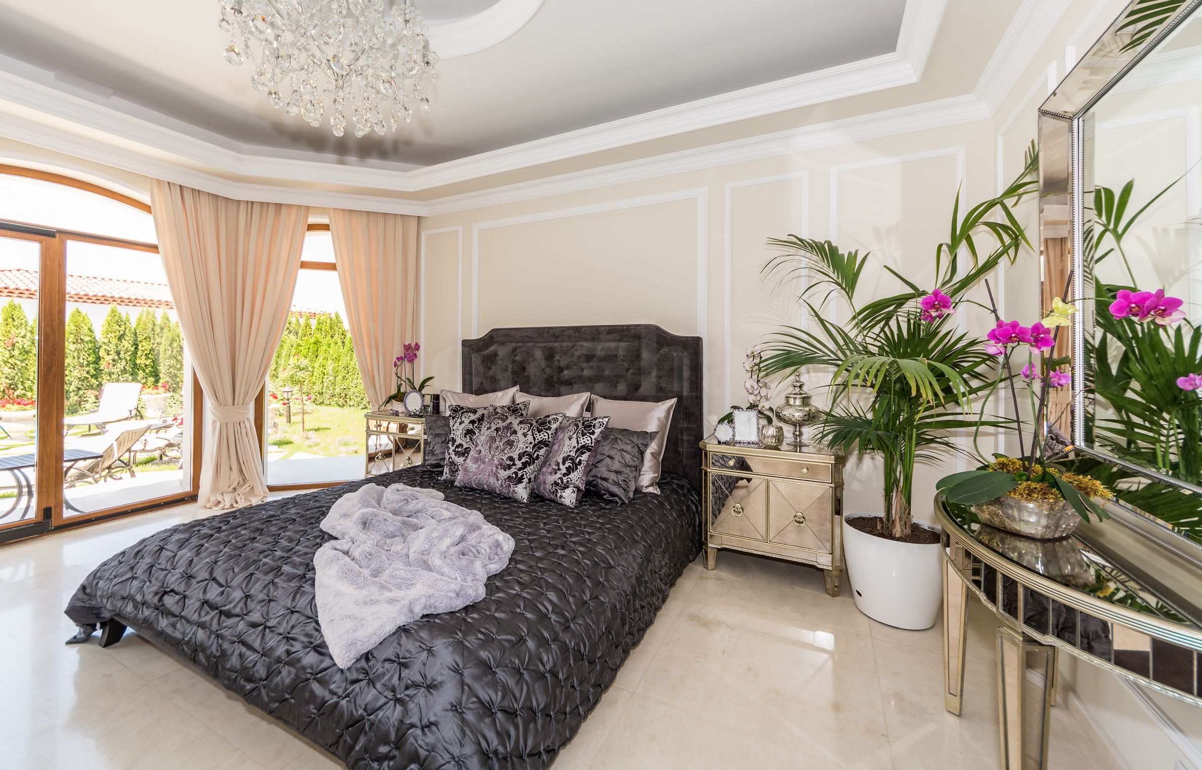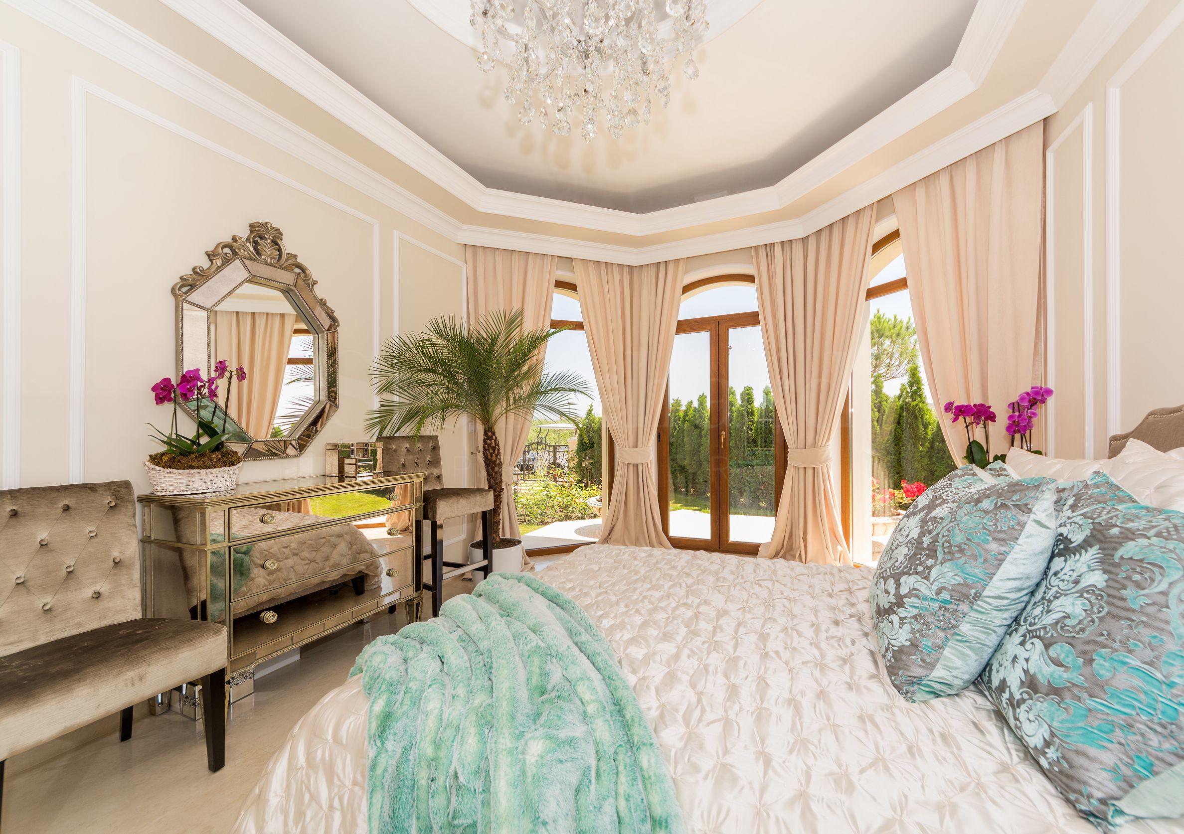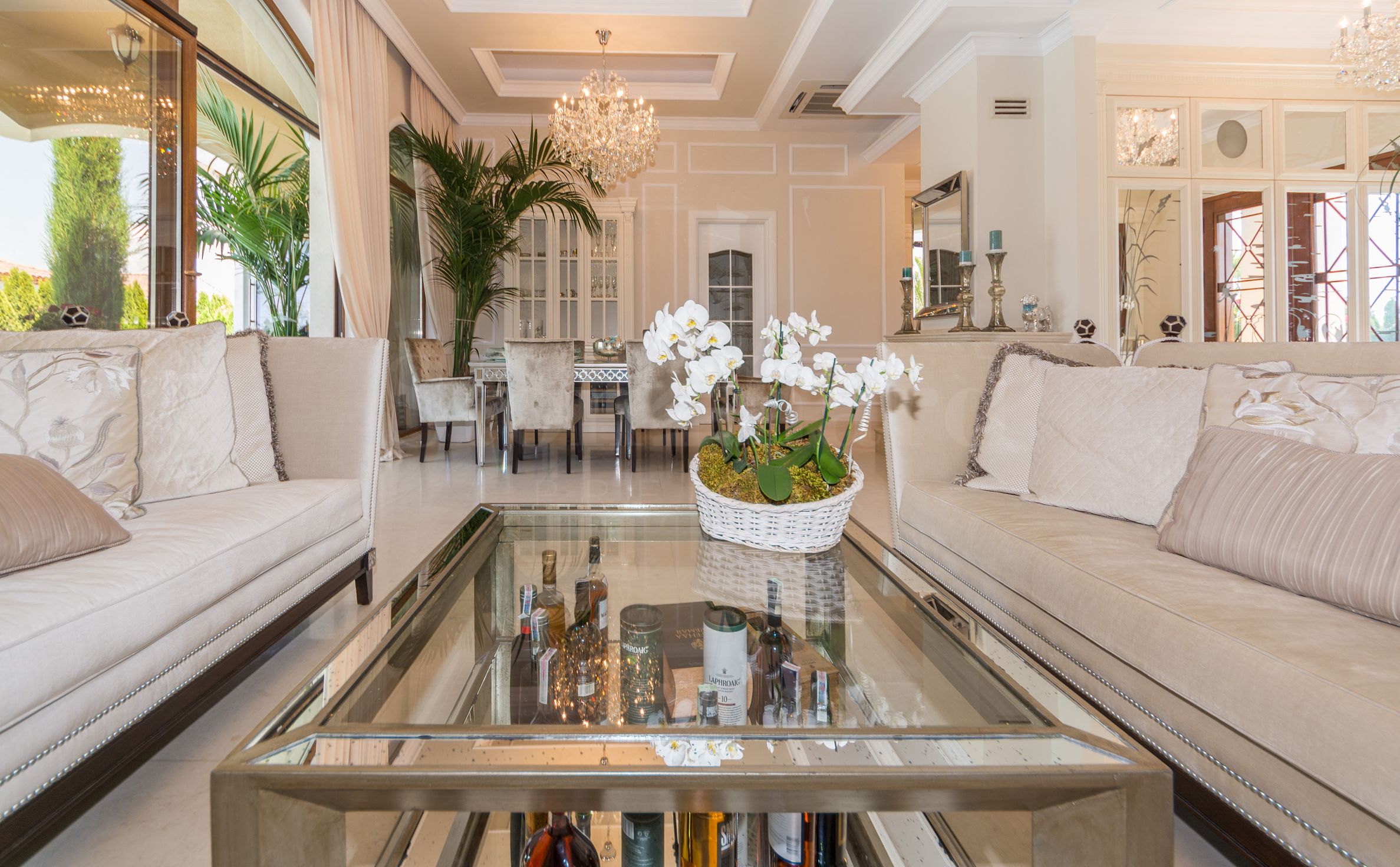 Интериорът на вилата е луксозно завършен и обзаведен с мебели по индивидуален проект, авторски витражи и висок клас естествени материали, които придават изискан стил и елегантност.