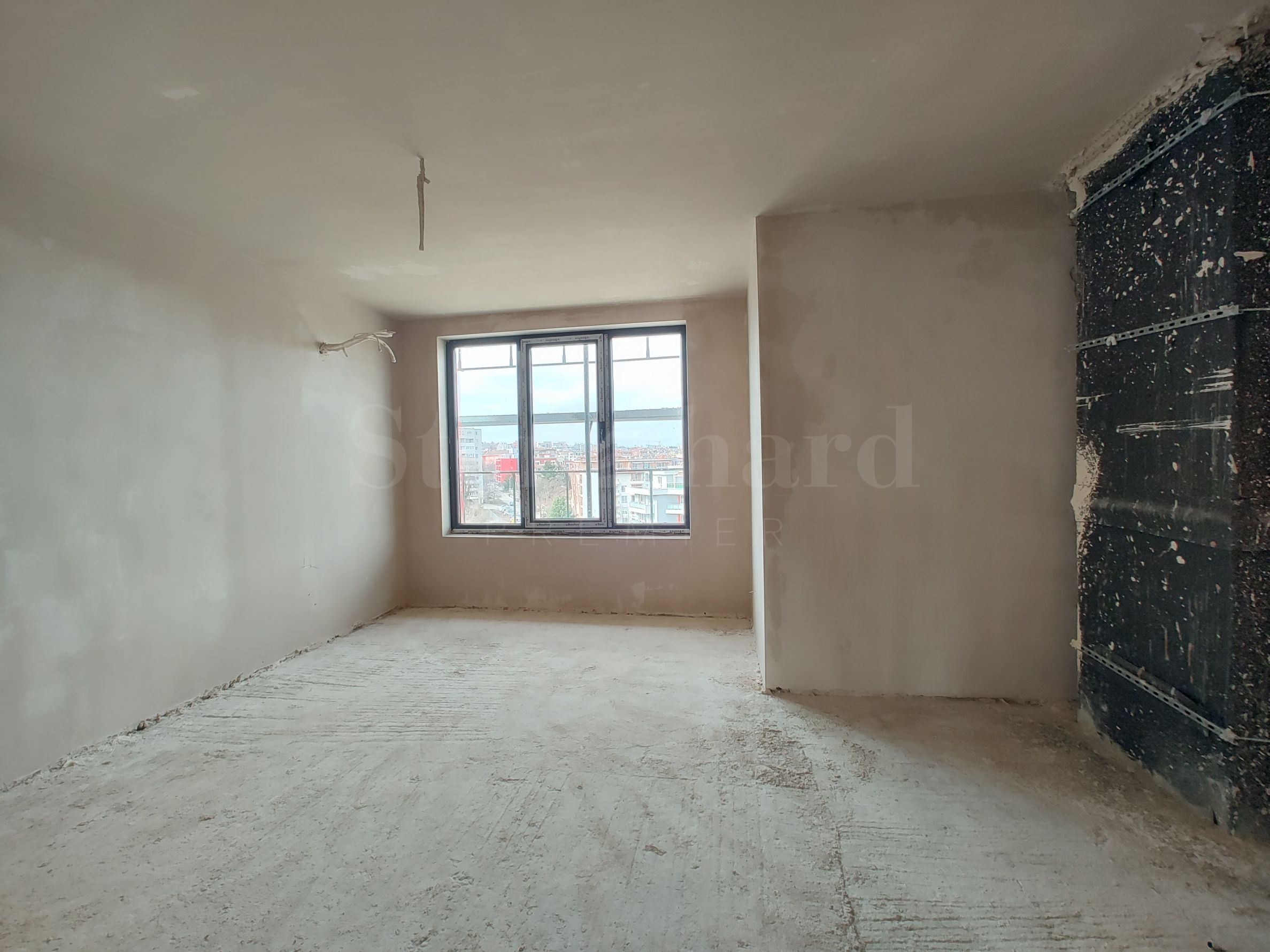 Апартаментът е на осми етаж от общо девет и е със следното разпределение: антре, хол с кухненска част, спалня, кабинет, баня с тоалетна, втора баня с тоалетна и тераса. Изложение: югоизток-северозапад.