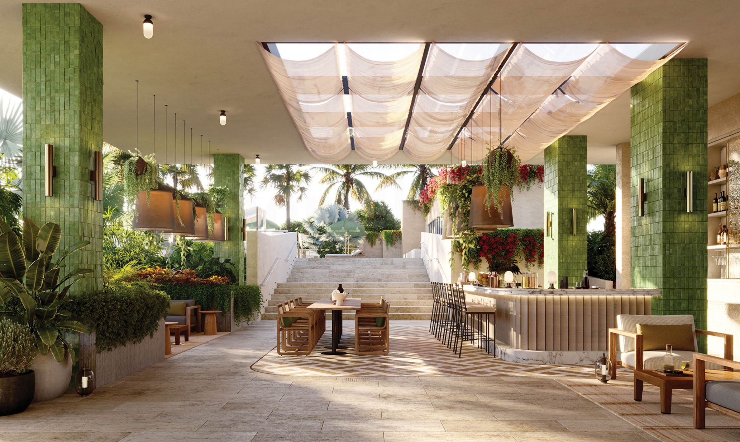 THE WELL Coconut Grove впечатлява още от първия поглед със своята модерна архитектура и хармонично присъствие сред зеленината на Coconut Grove. Ъгловите стъклени фасади улавят меката слънчева светлина, а богатото озеленяване естествено свързва сградата с околната среда, създавайки усещане за свежест и спокойствие още при пристигането.