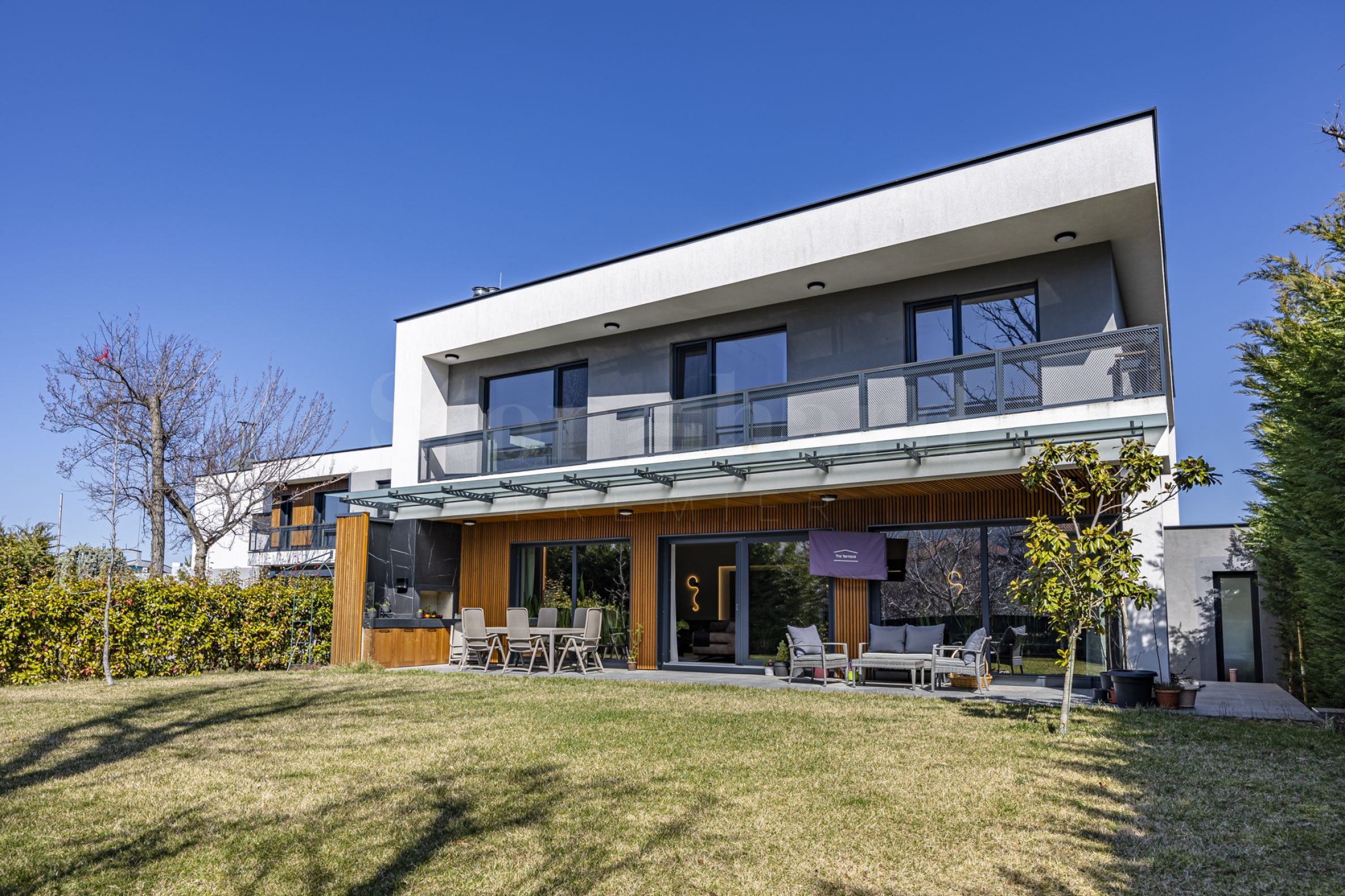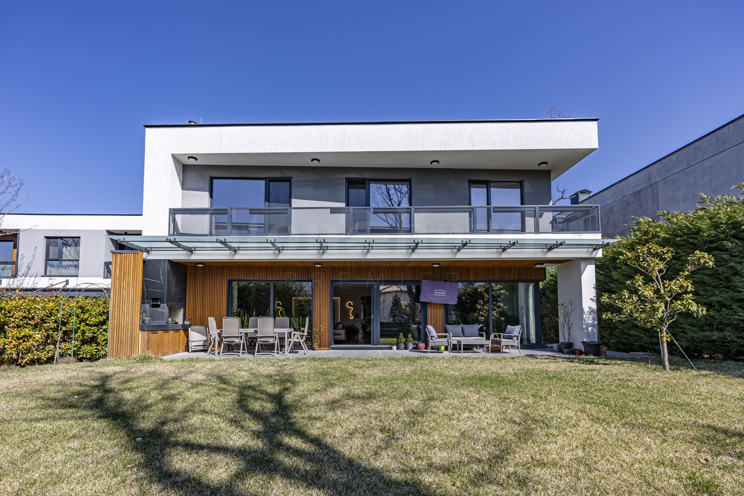 Разположена върху 650 кв.м собствен парцел, с РЗП 478 кв.м, тя предлага отлично организирано външно пространство с барбекю зона, външна трапезария и зона за отдих, които превръщат двора в естествено продължение на дома.