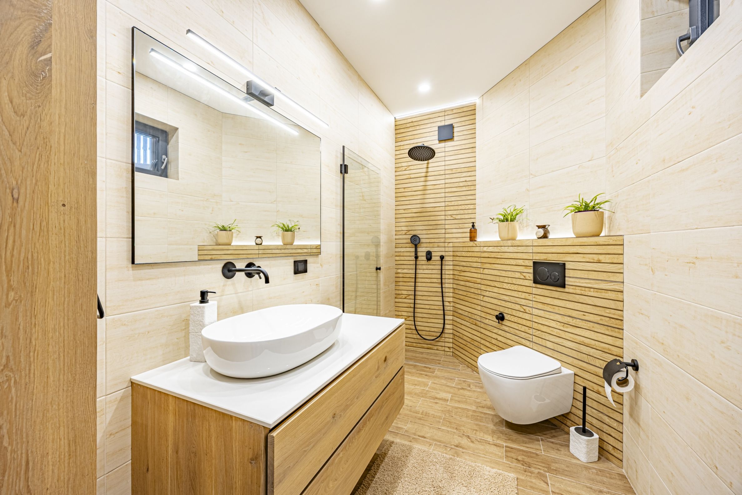 Интериорът на къщата се отличава с просторни помещения, висок клас материали и внимателно подбрани детайли. Подовите настилки са изпълнени с естествен камък и трислоен дъбов паркет, за елегантност и устойчивост във времето. Отоплението е решено чрез подово отопление на газ, осигуряващо комфорт и енергийна ефективност през всички сезони.