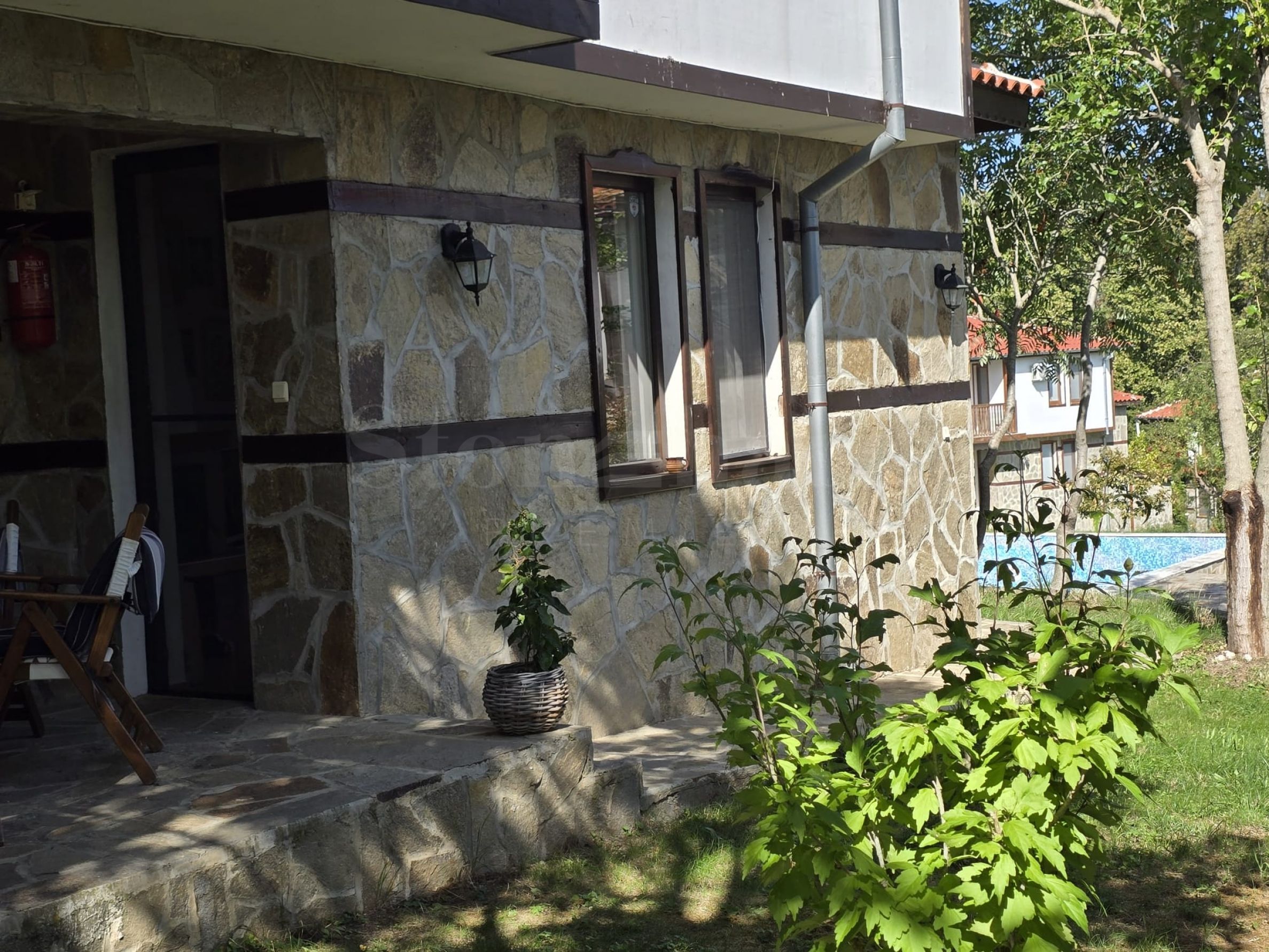 Имотът е с РЗП - 127 кв.м с прилежащ двор от 200 кв.м с покрита веранда с мека мебел и дървена градинска люлка за релакс през летните дни.