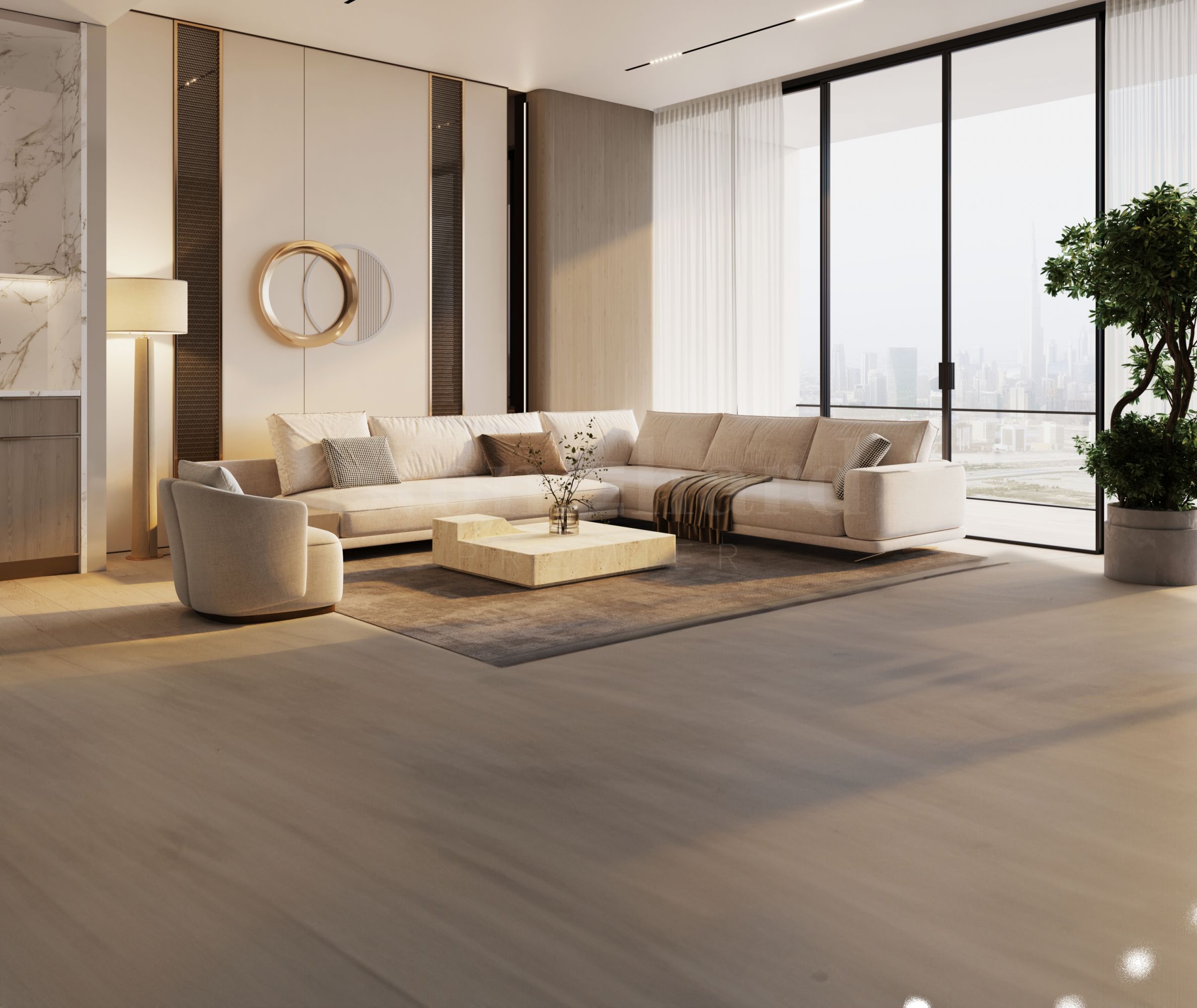 Локацията осигурява бърз и лесен достъп до ключови точки в Дубай – Burj Khalifa и Dubai Mall са само на около 10 минути с автомобил, а Dubai International Airport се достига за приблизително 15 минути. Най-близкият плаж се намира на около 11 км, което допълва усещането за перфектен баланс между градски живот и близост до морето.