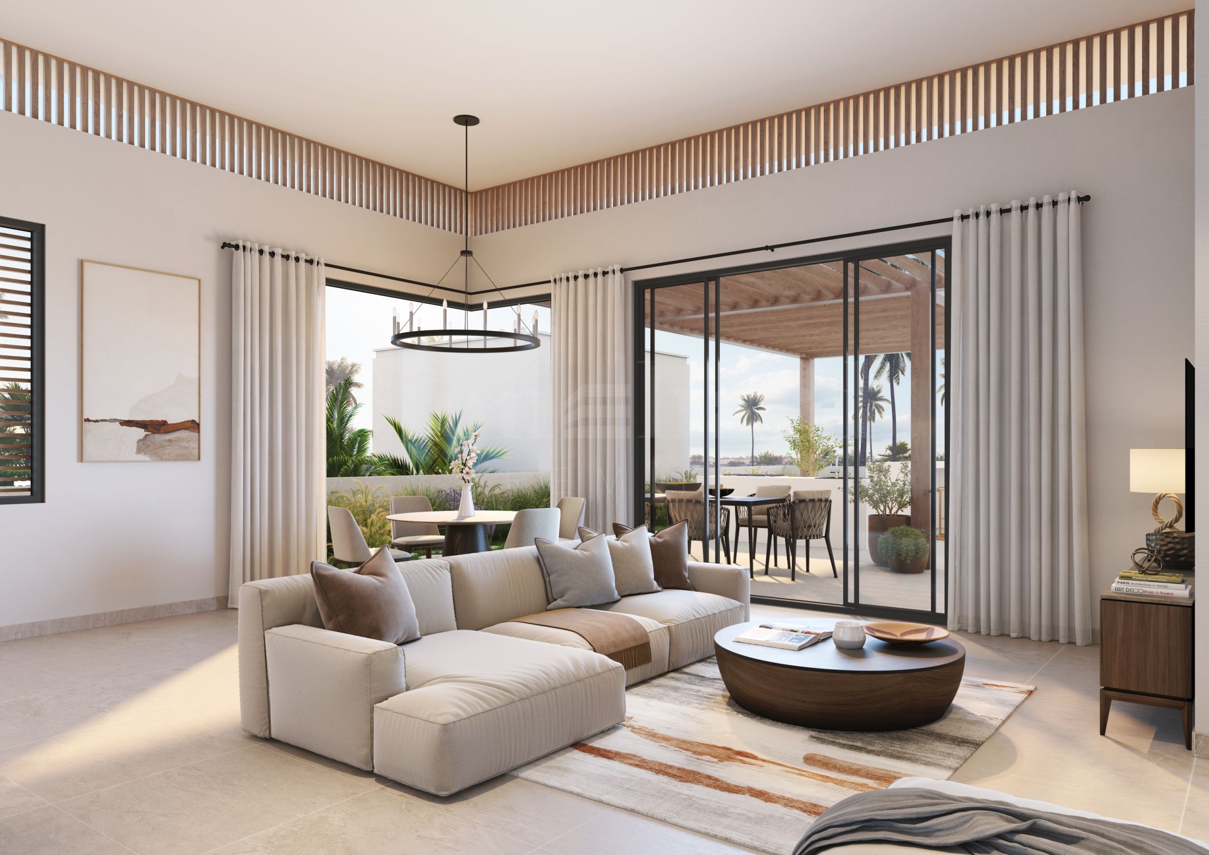 Представяме изискана вила с три спални, проектирана с внимание към детайла и усещане за простор, комфорт и уединение. Имотът разполага и с отделна стая за персонал със собствена баня, осигуряваща допълнително удобство и функционалност в ежедневието.
